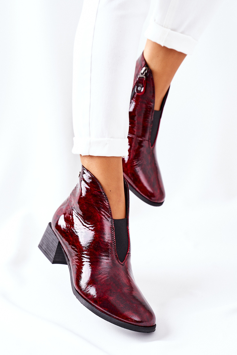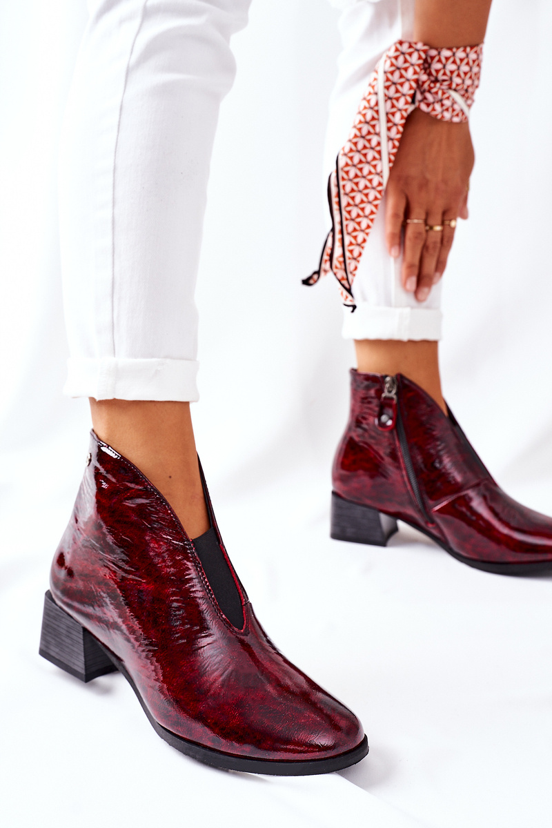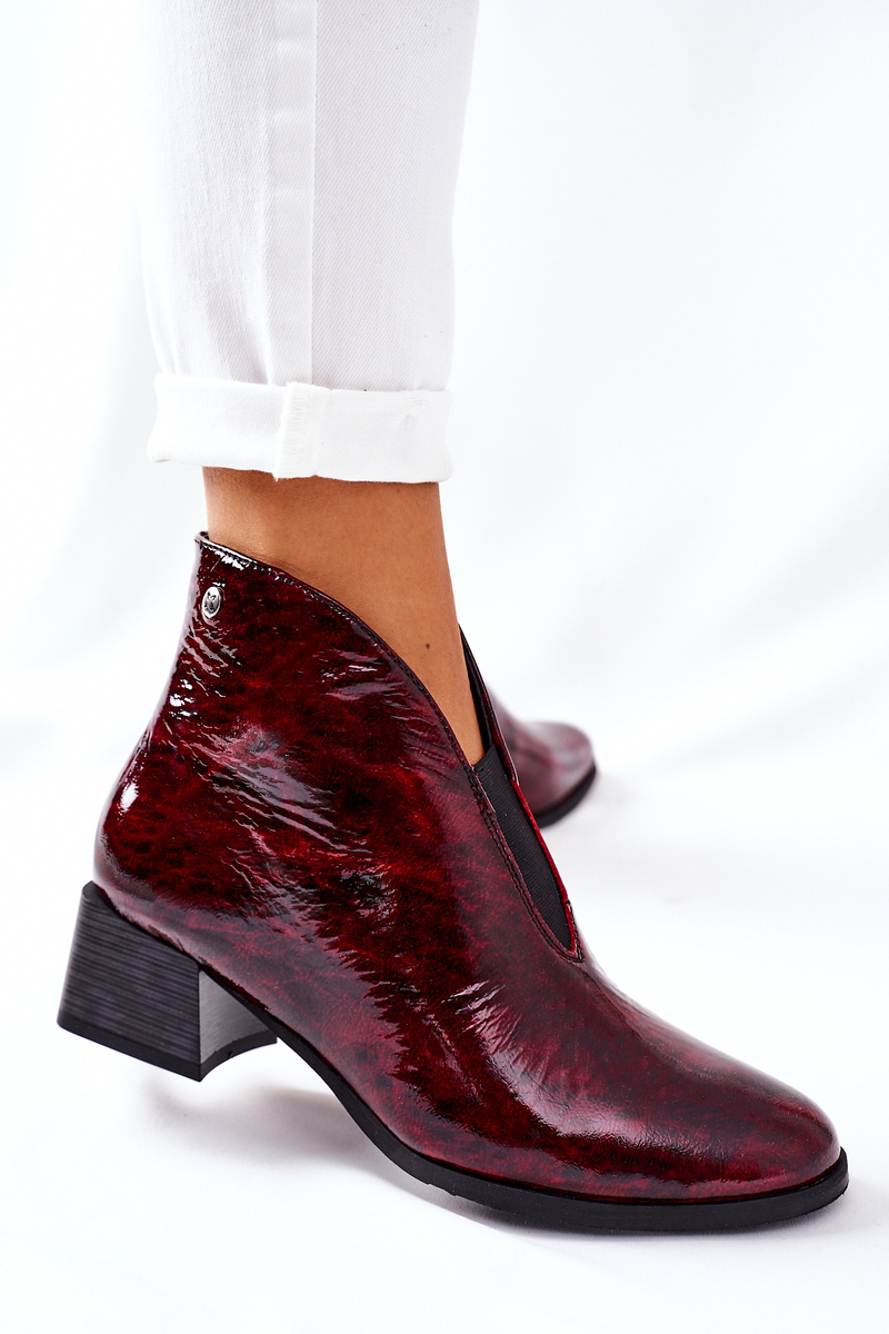 Kožené Teplé Boty Na Podpatku Maciejka 04777-23 Tmavě červené