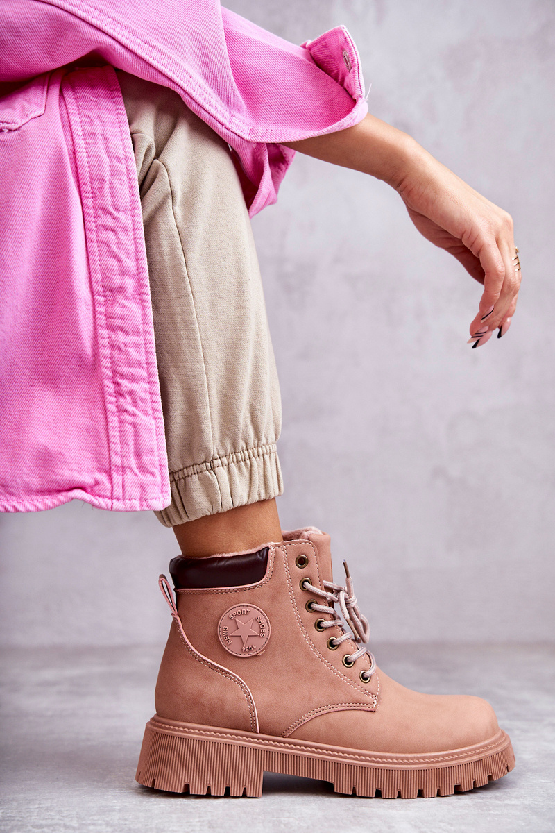 Kožené teplé boty Trappers Růžove Felizia