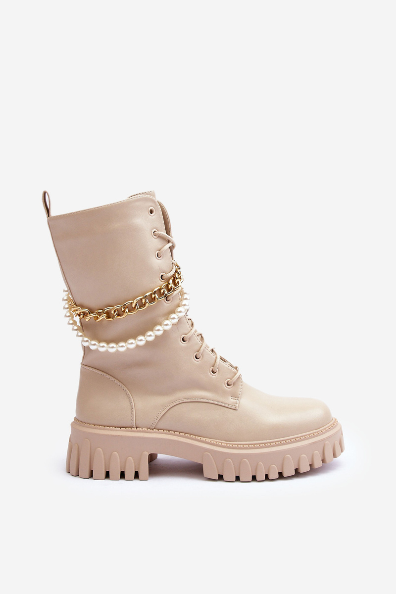 Kožené vysoké boty s řetízkem Bežová Nameer