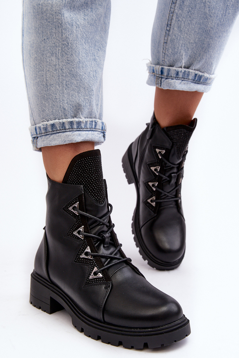 Kožené zateplené boty s džetami černé Gwen SBarski HY93-52A