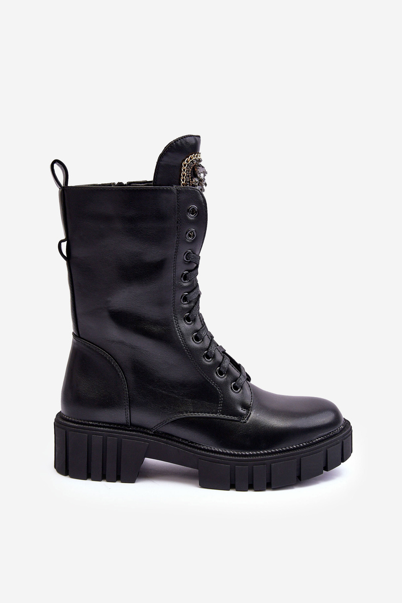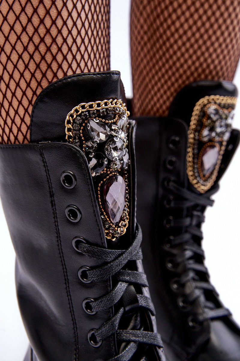 Kůže Botky Workery s Bižuterní Ozdobou Černé Marx