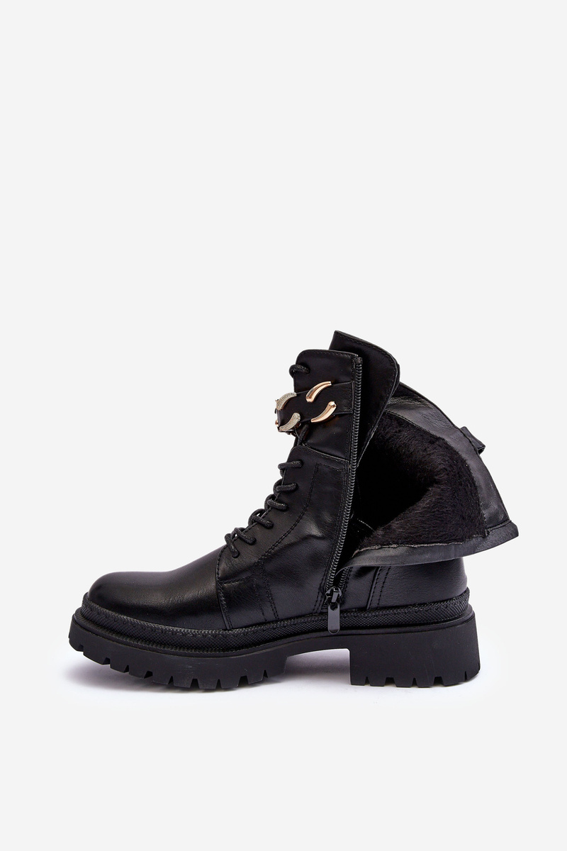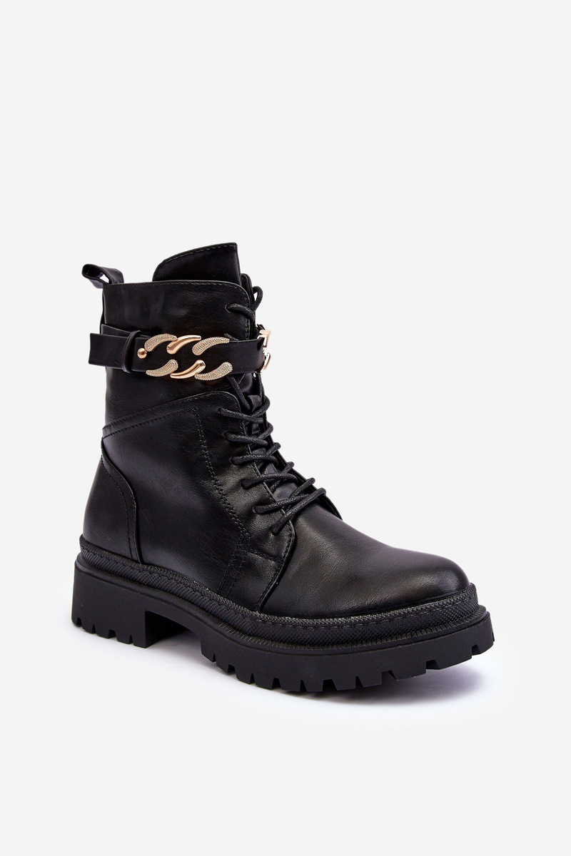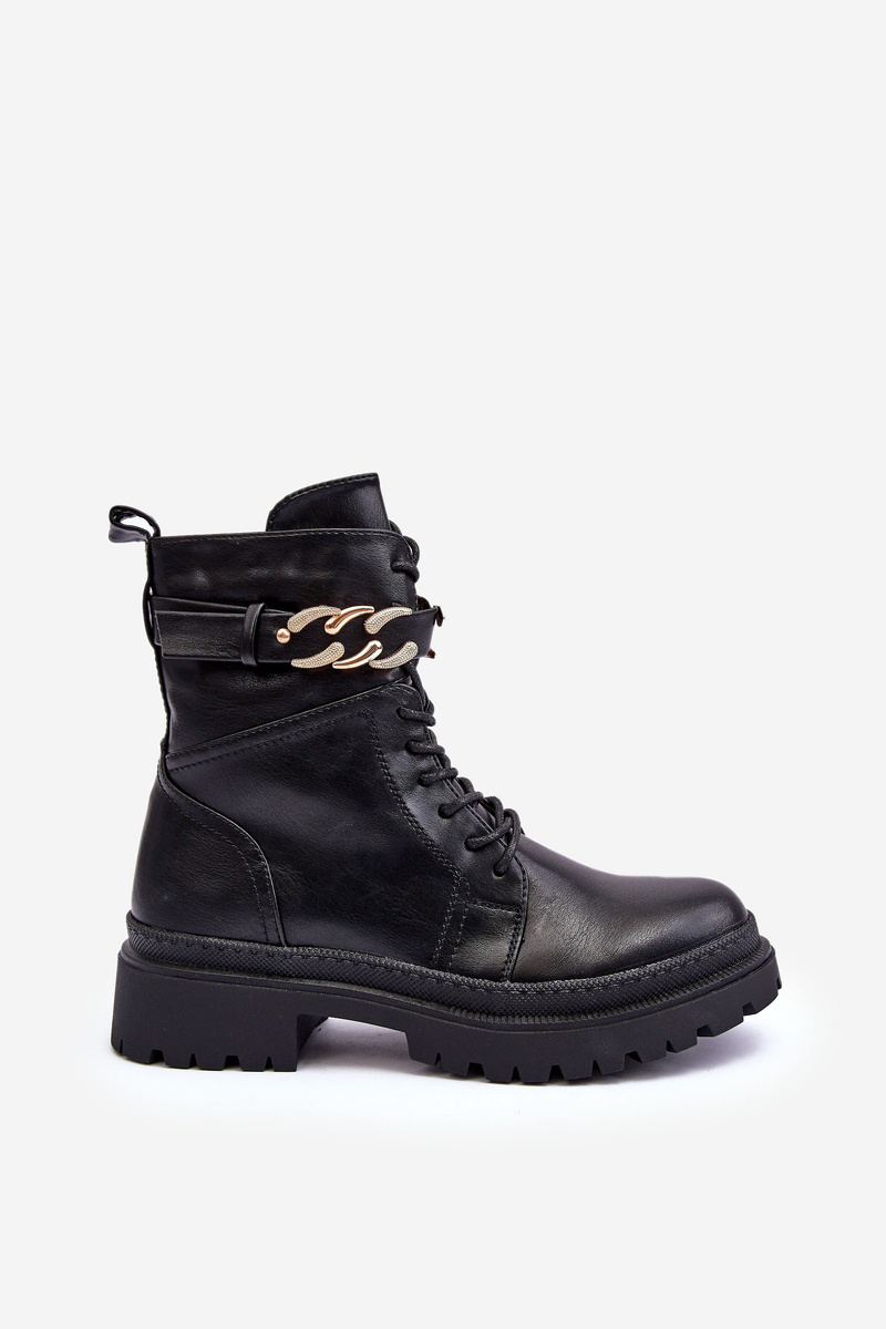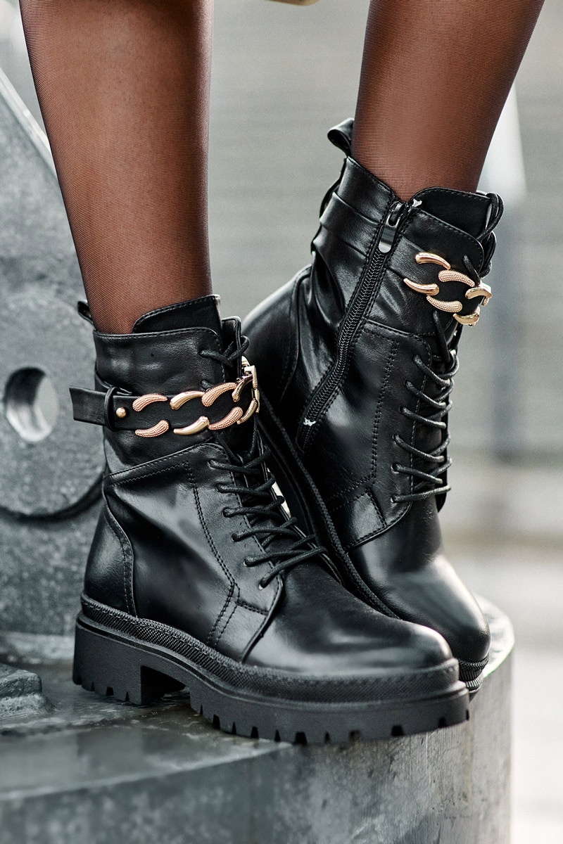 Kůže Botky Workery s Ozdobným Páskem Černé Enili