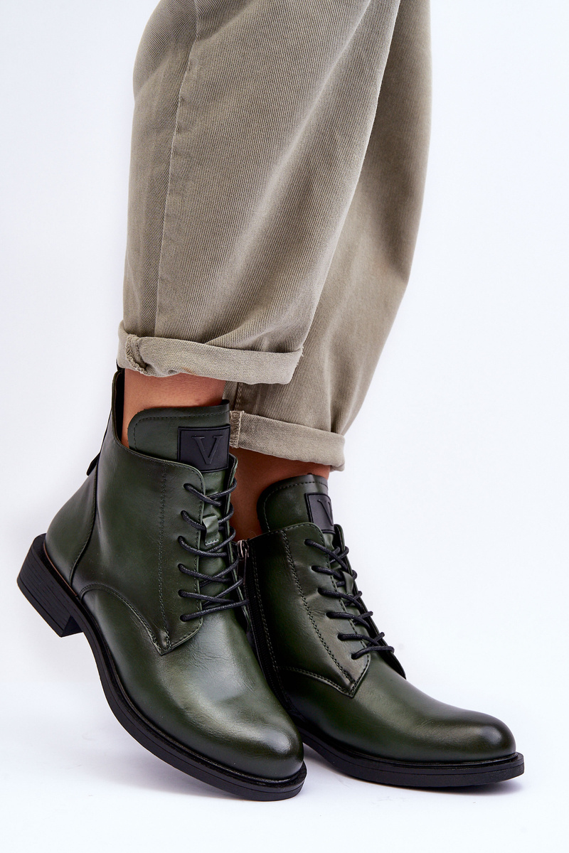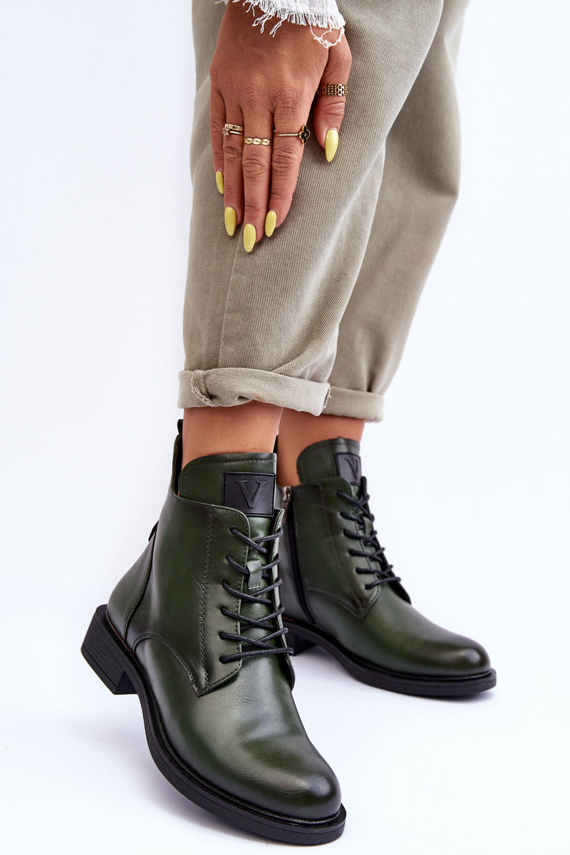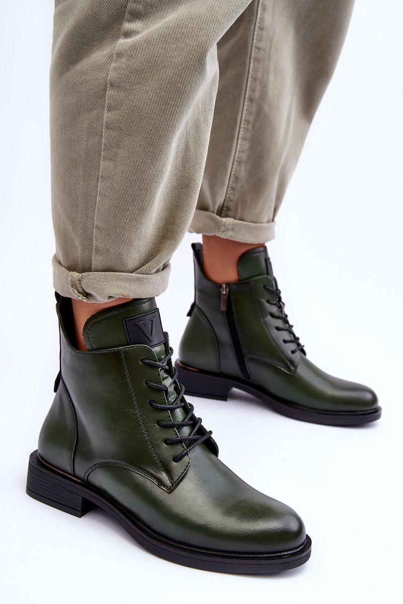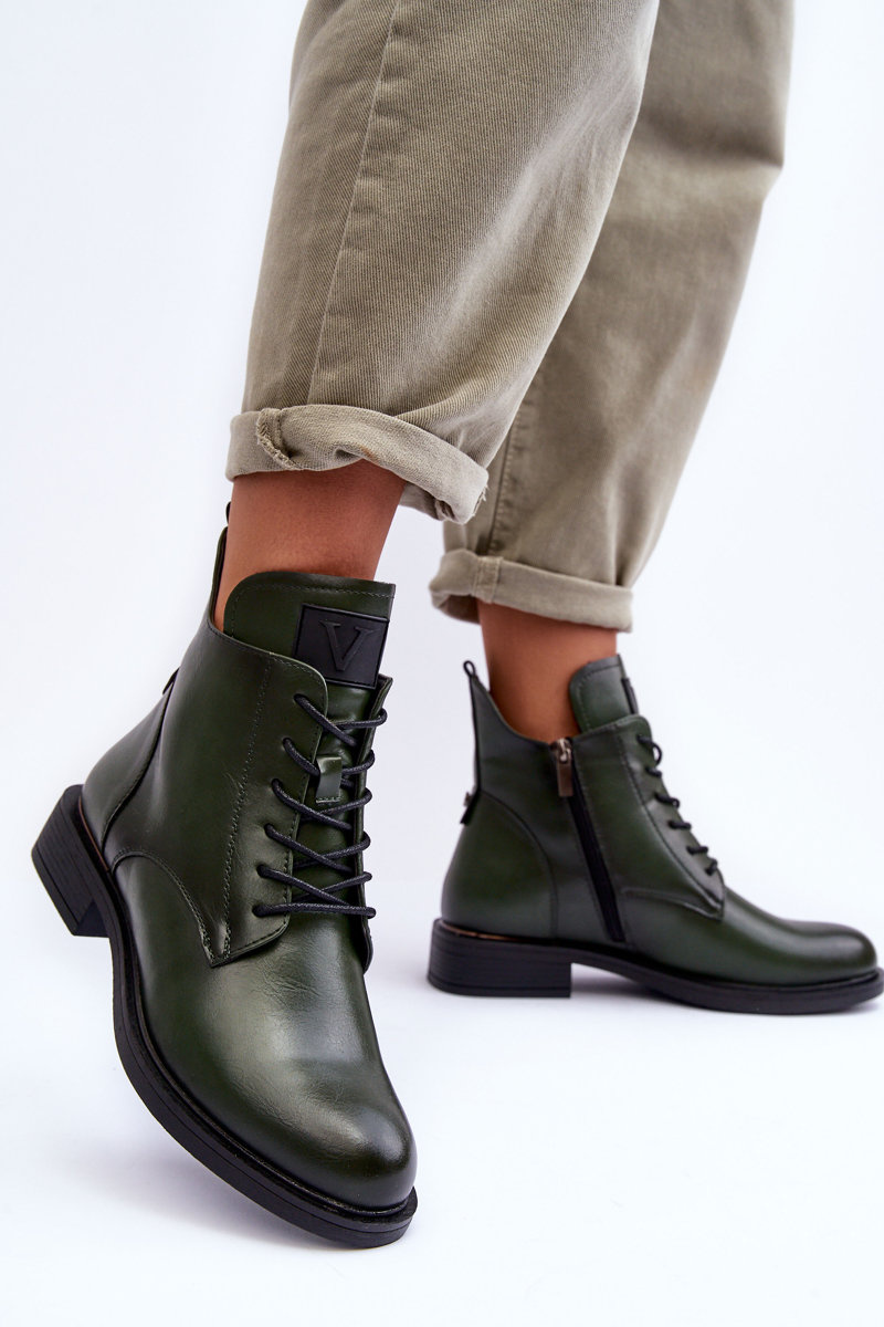 Pohodlné dámské boty jsou vyrobeny z ekologické kůže. Mají zip na straně a další šněrování. Nastavené na plochém podpatku. Špička tohoto obuvi je zpevněná. Tento model je ideální na podzimní dny! Musíte je mít ve svém šatníku! Při výběru velikosti se řiďte tabulkou velikostí.