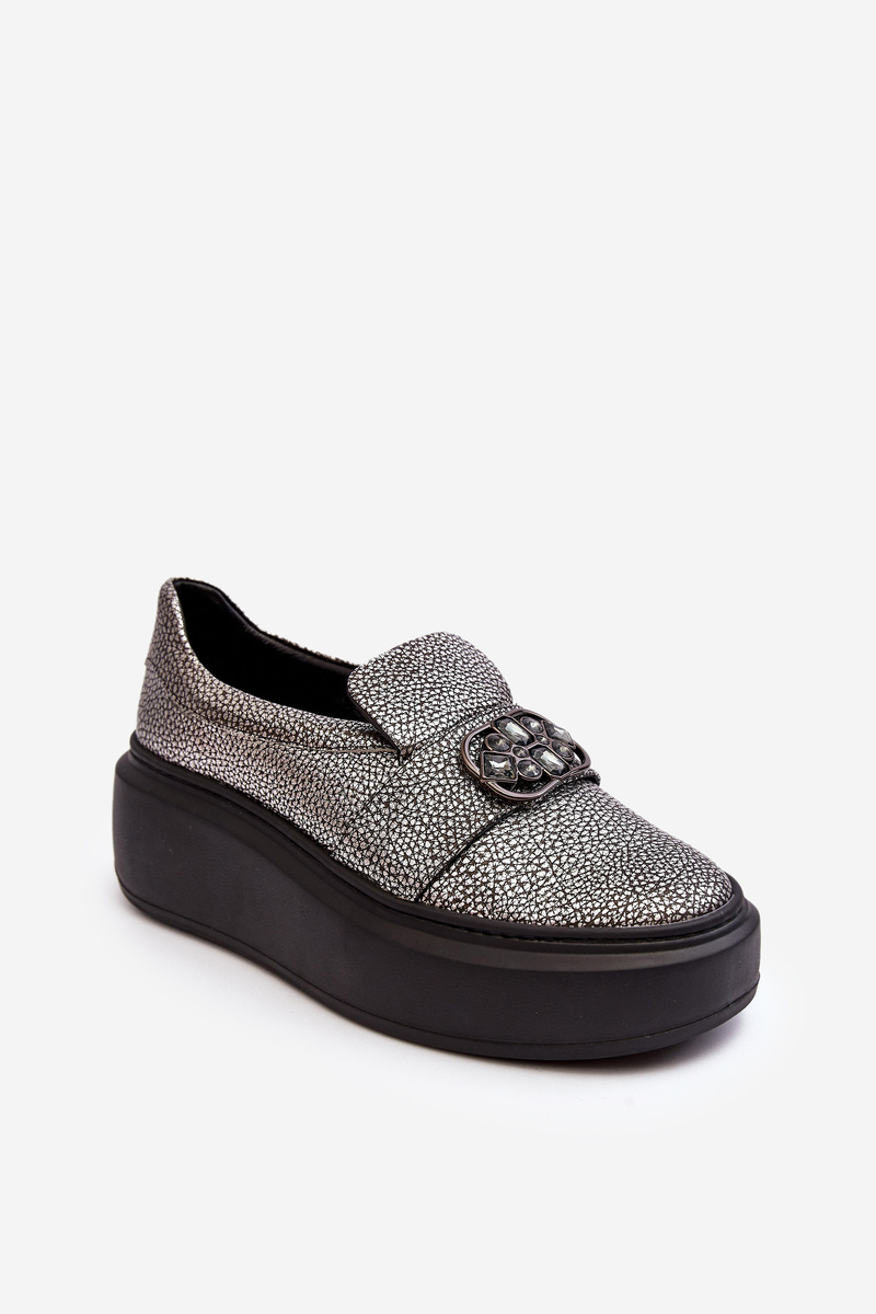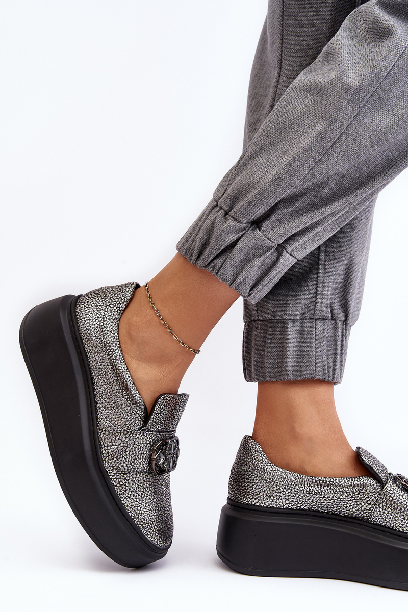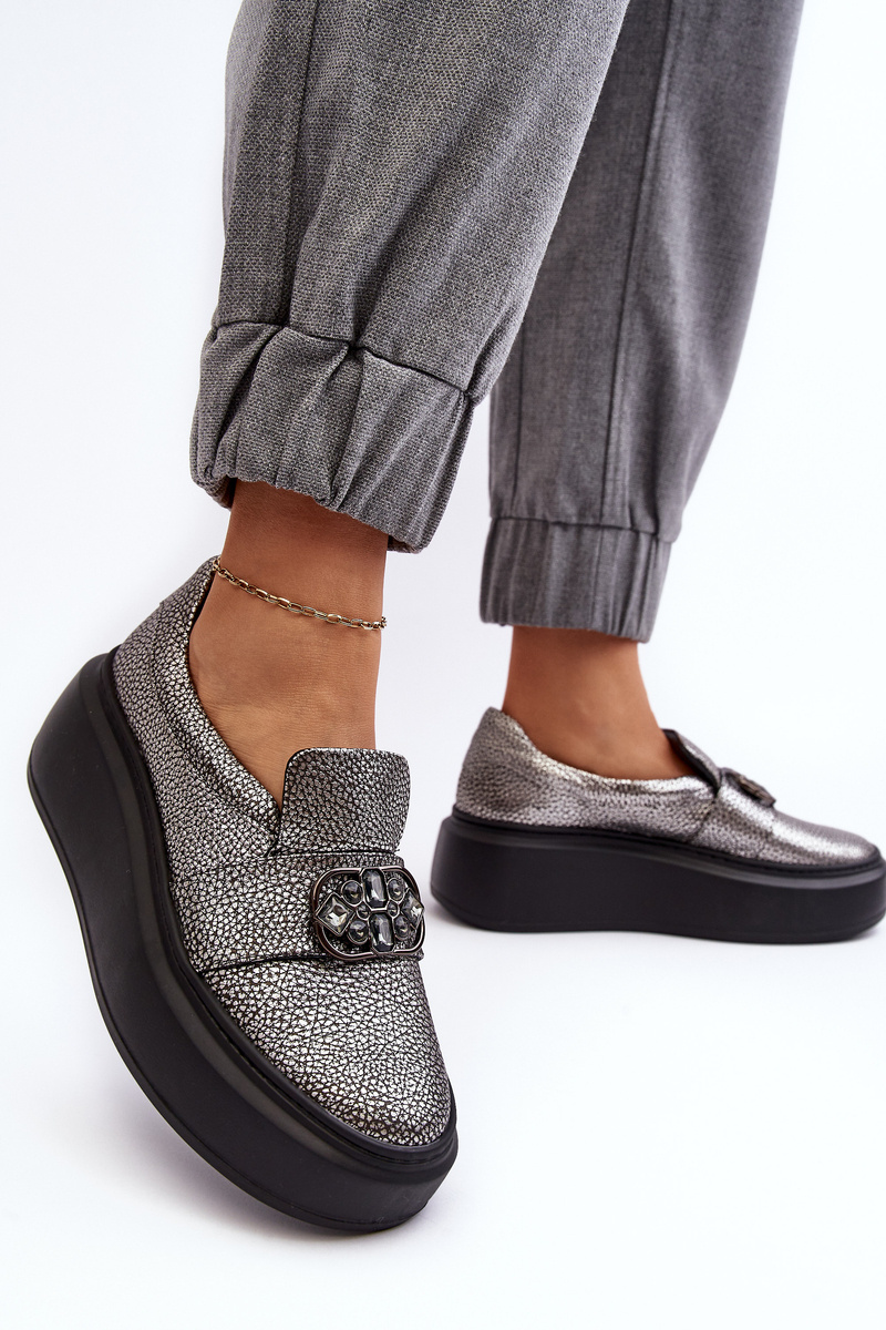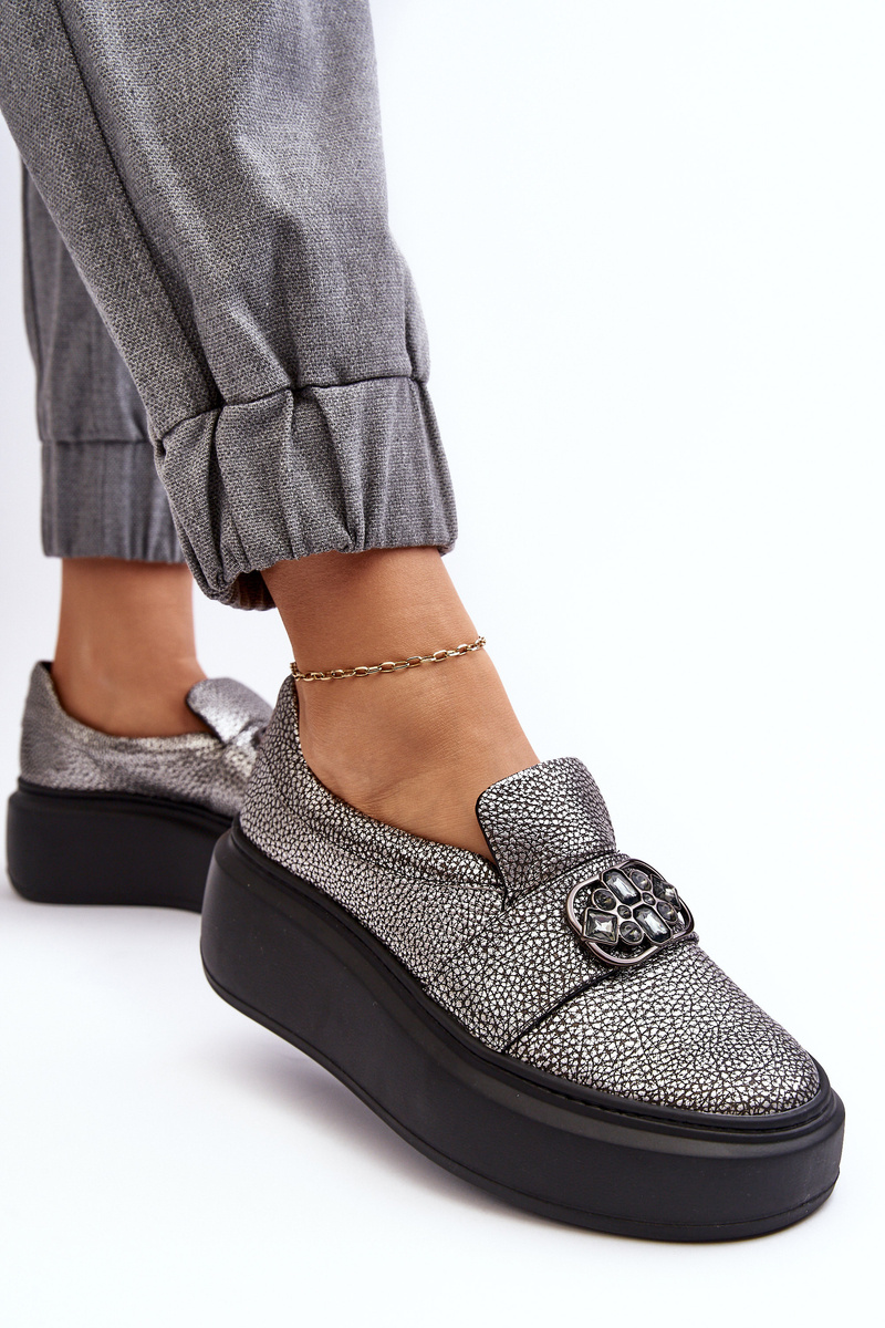 Kůže Dámské Polobotky Na Platformě S Ozdobou Laura Messi 2697/810 Stříbrné