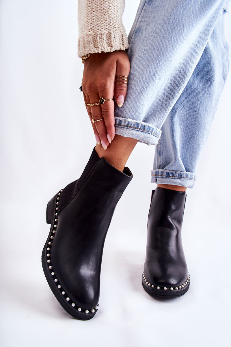 Krásné pantofle z eko kůže a elastické látky na nártu, která umožňuje přizpůsobit obuv velikosti nohy. Uvnitř je deka na boty na zahřátí. Malé perly na podrážce. Plochá pata zajišťuje stabilitu při každém kroku. Prohlédněte si celou naši nabídku bot ! Výběr velikosti naleznete v tabulce velikostí