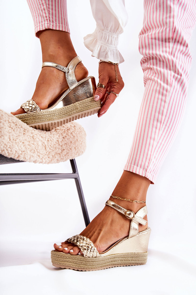 Dámské sandály vyrobené z eko kůže. Zapínání na nastavitelnou přezku. Hlavním prvkem zdobení je krásný, propletený pruh na přední straně. Klín je navíc zdobený. Gumová podrážka a protiskluzová. Eko kožená stélka se postará o vaše pohodlí a pohodlí. Sandály se budou skvěle hodit k letním stylizacím. Při výběru velikosti použijte tabulku velikostí.