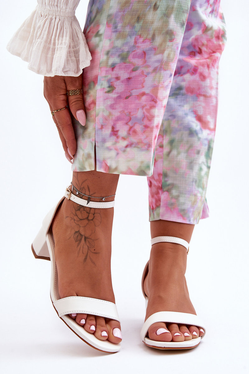 Kůže Sandály Na Podpatku Hladké Bílé Inspire Me!