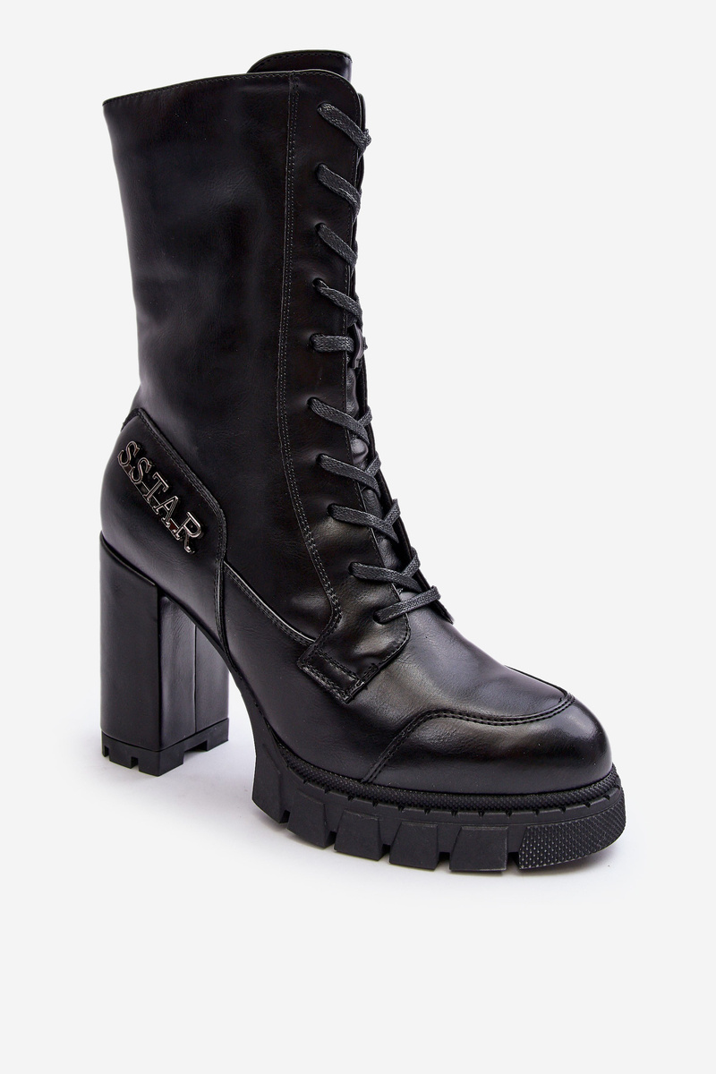 Kůže Šněrovací Boty Na Masivním Sloupku Černá Khariah