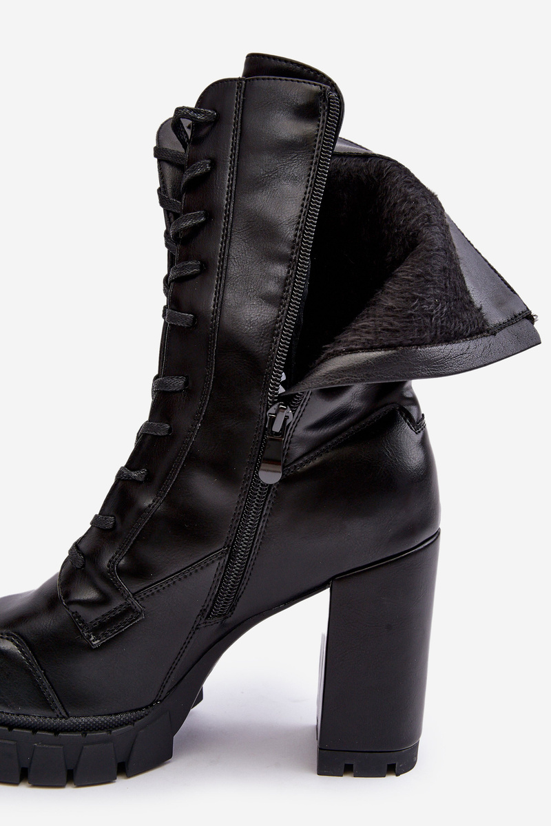 Dámské boty vyrobené z eko semiše. Zip na vnitřní straně kotníku. Šněrování na přední straně. Podpatek ve formě vysokého sloupku. Model s vyšším kotníkem. Vnitřek zateplený obuvním kožichem. Navíc je špička zesílená. Při výběru velikosti se řiďte tabulkou velikostí.