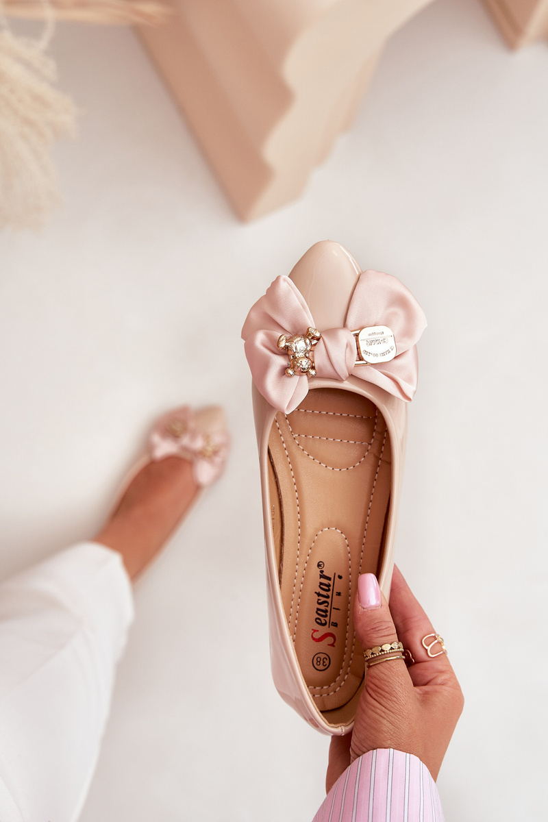 Lakované Baletky S Mašlí A Zlatou Broží Béžové Rivona