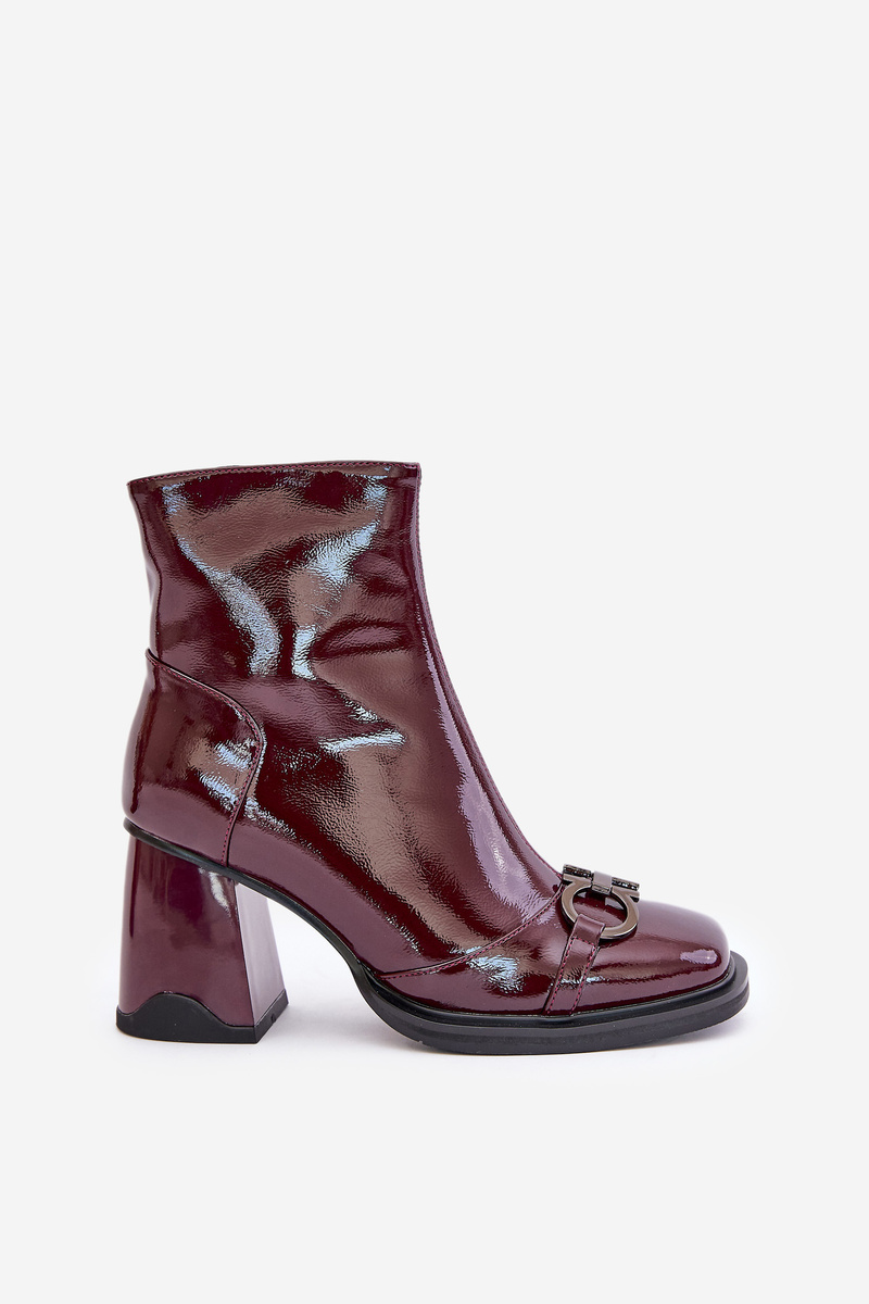 Lakované botky na podpatku zateplené s ozdobou D&A MR880-021 bordové
