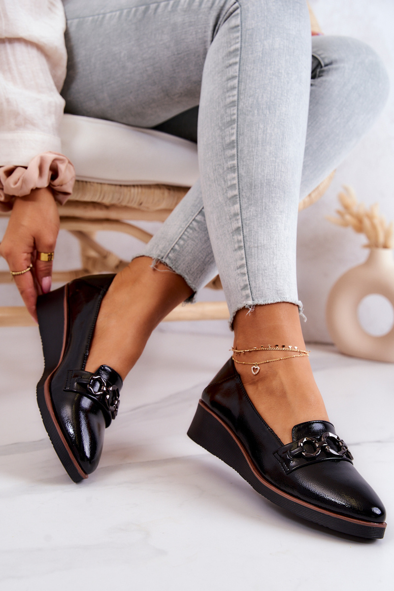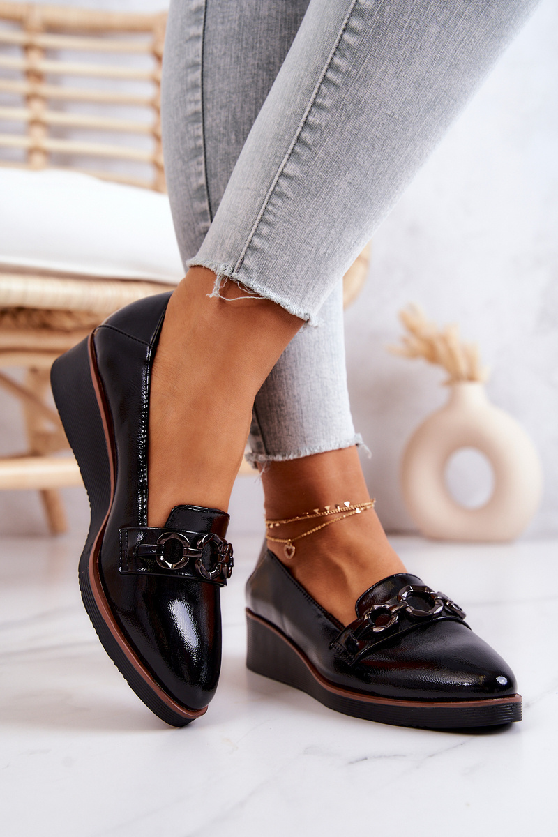 Elegantní podpatky na klínku jsou vyrobeny z ekologicky lakované kůže s důrazem na každý detail. O vaše pohodlí se postará stélka z přírodní kůže. Klínový podpatek jemně zvedne vaši postavu. Nos mandlového tvaru. Eleganci dodává ozdobný řetízek. Rozhodně je musíte mít! Už nečekejte! Při výběru velikosti použijte tabulku velikostí.