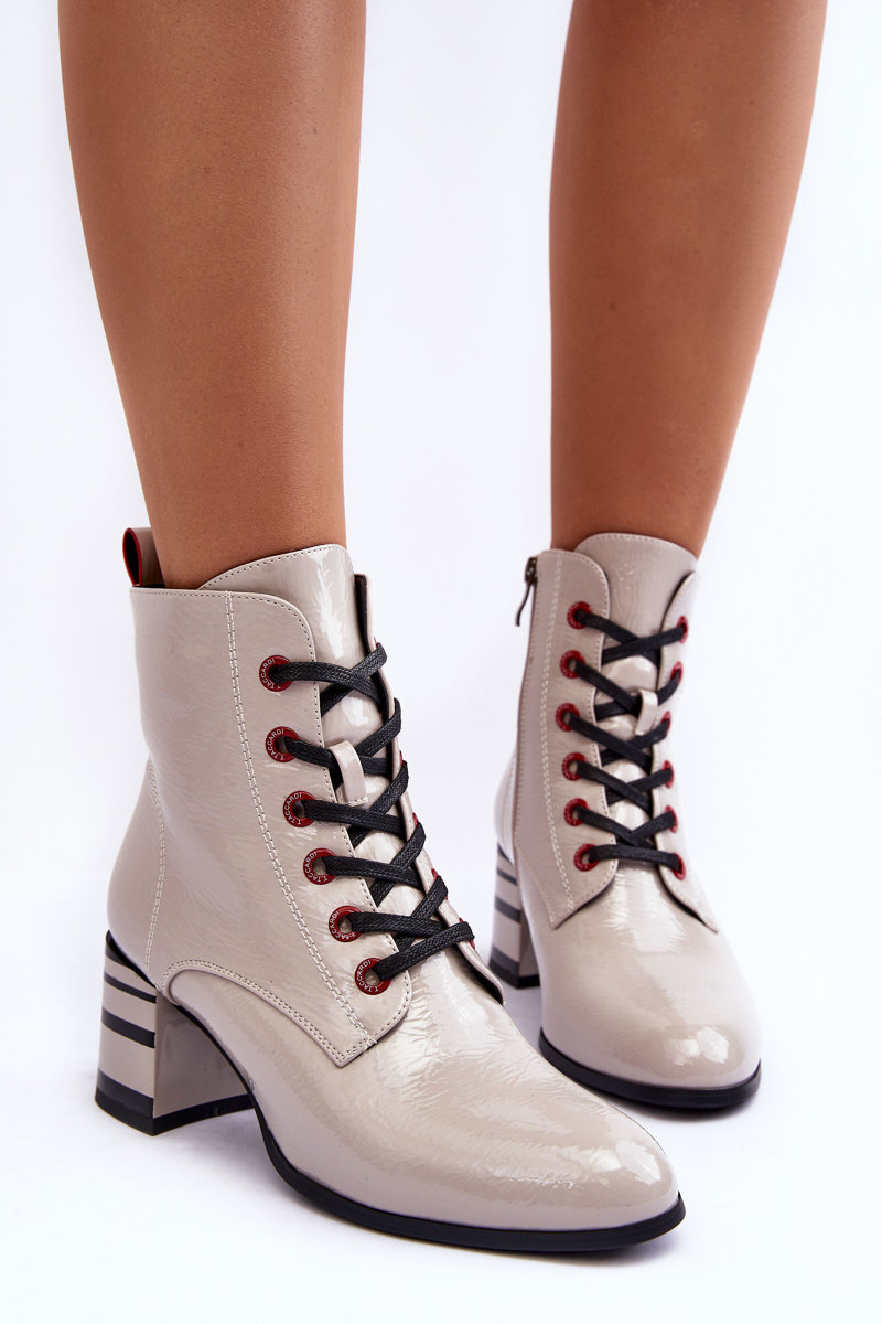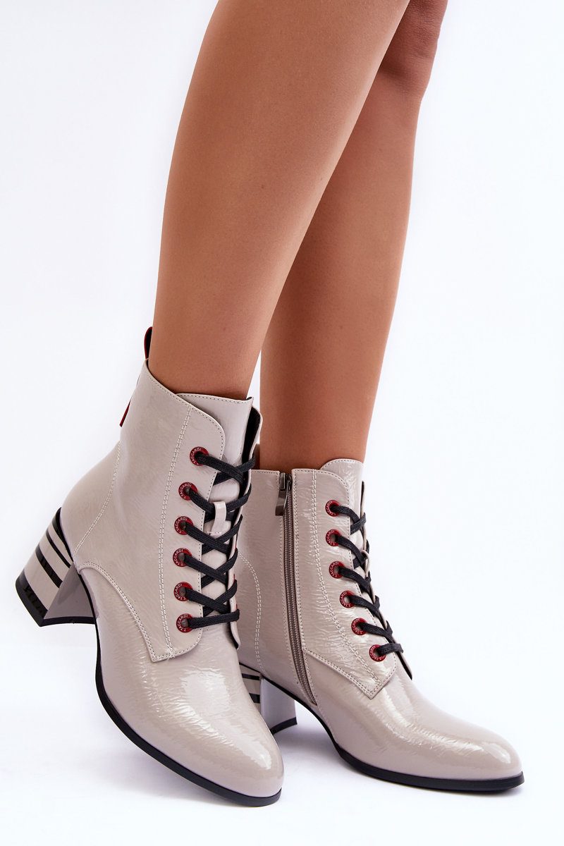 Lakované boty na podpatku SBarski MR870-49 světle šedé