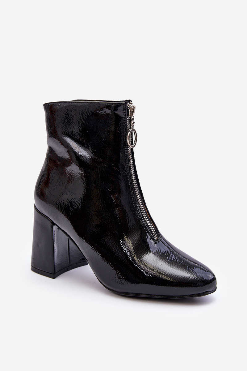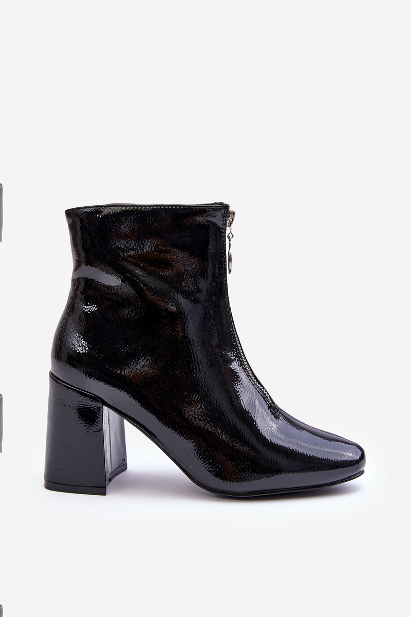 Lakované Boty s Ozdobným Zipem Černé Sevil
