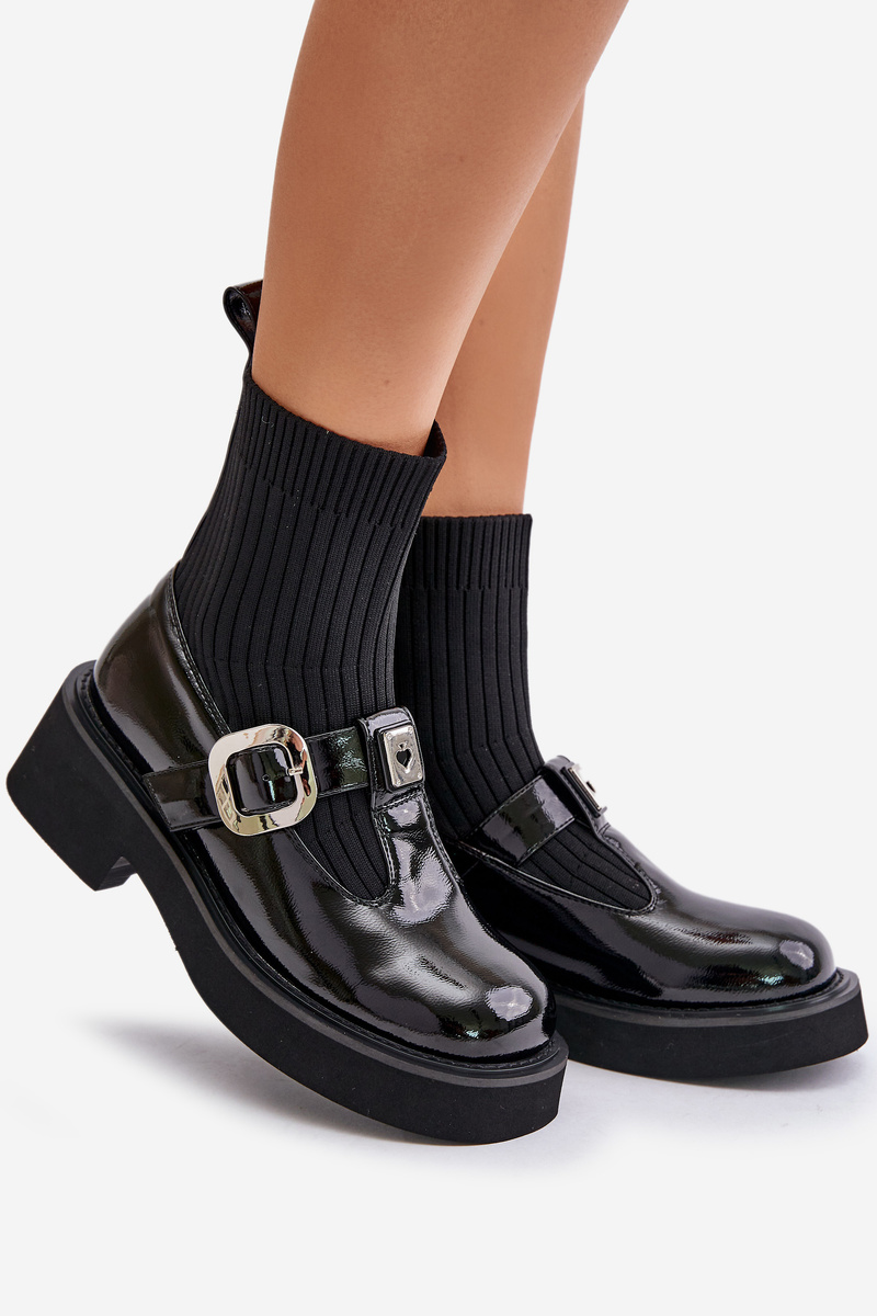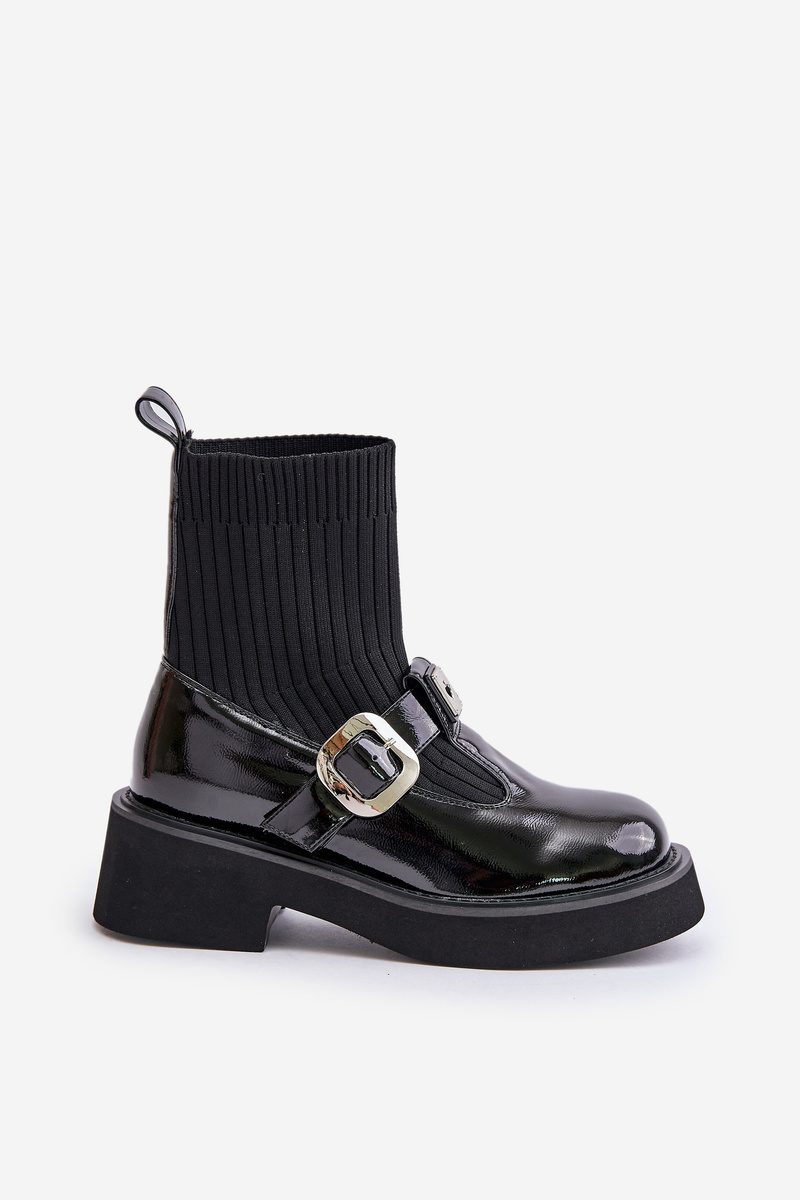 Lakované Boty Se Ponožkou A Přezkou Černé MR880-076