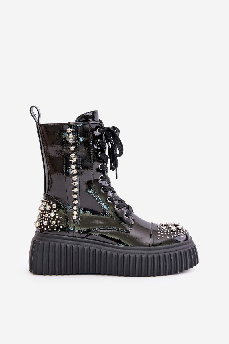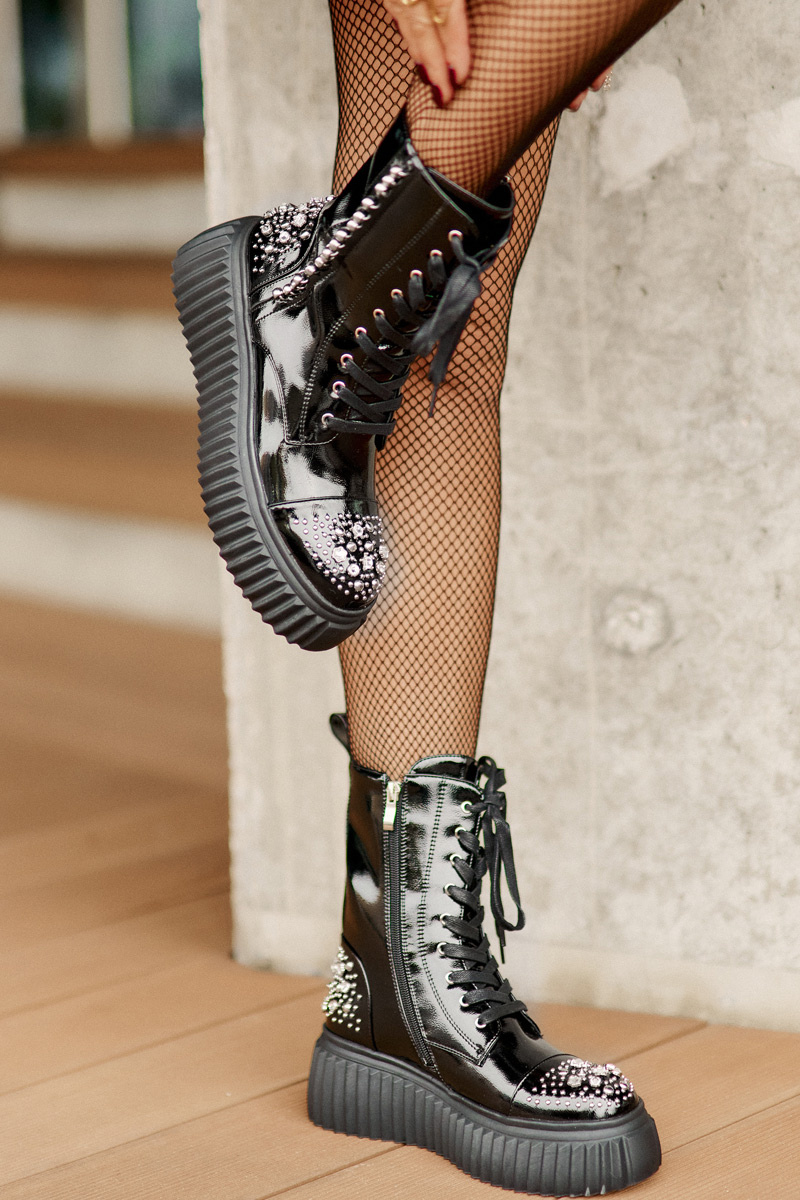 Lakované boty se zdobením na platformě D&A MR880-079 Černé