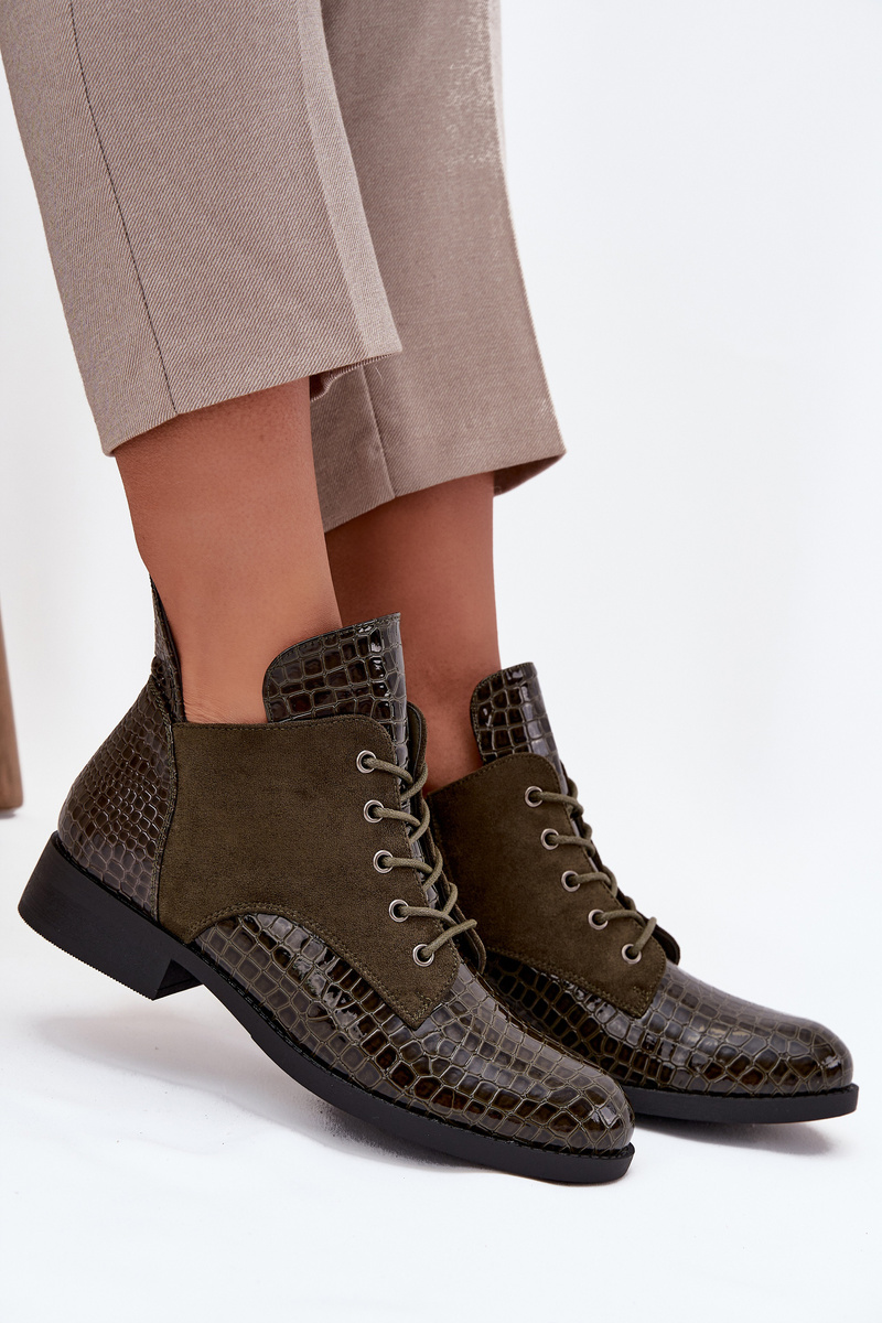 Lakované dámské kotníkové boty s ozdobným reliéfem vyhřívané Vinceza 16477 tmavě zelené