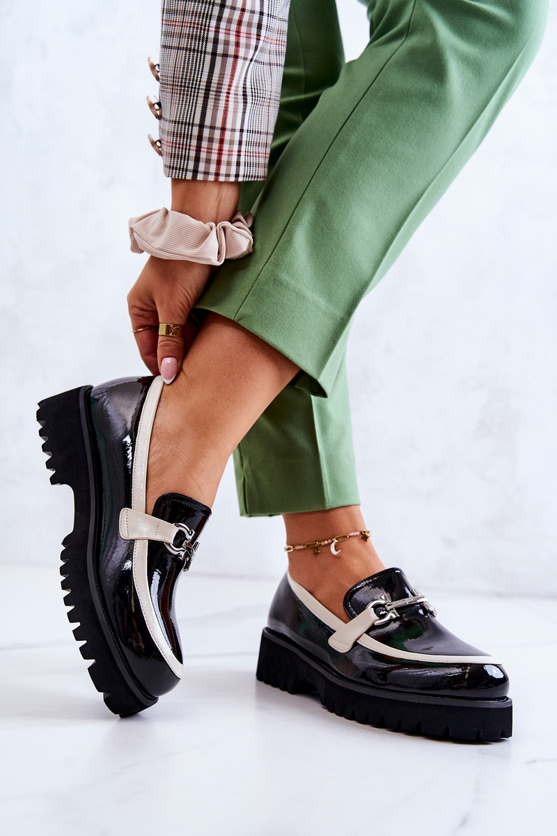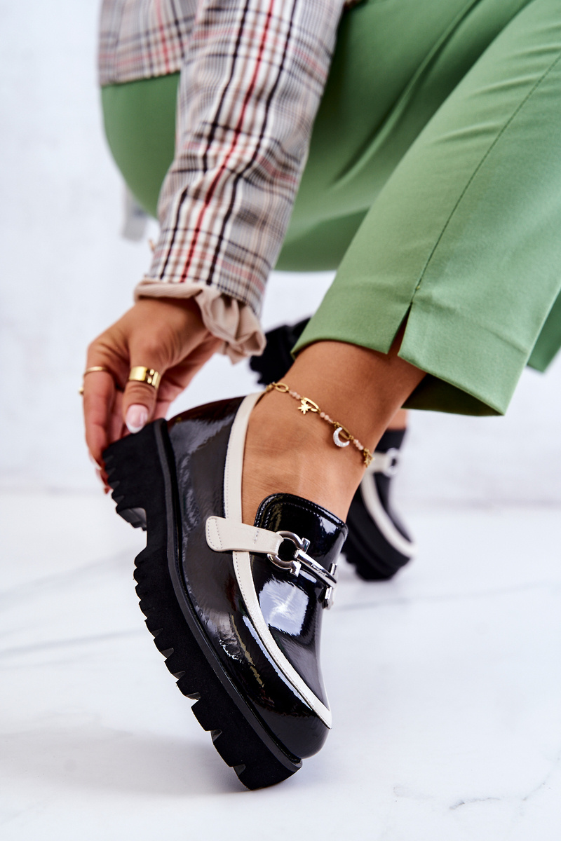 Lakované dámské mokasíny Černobílé Cassida
