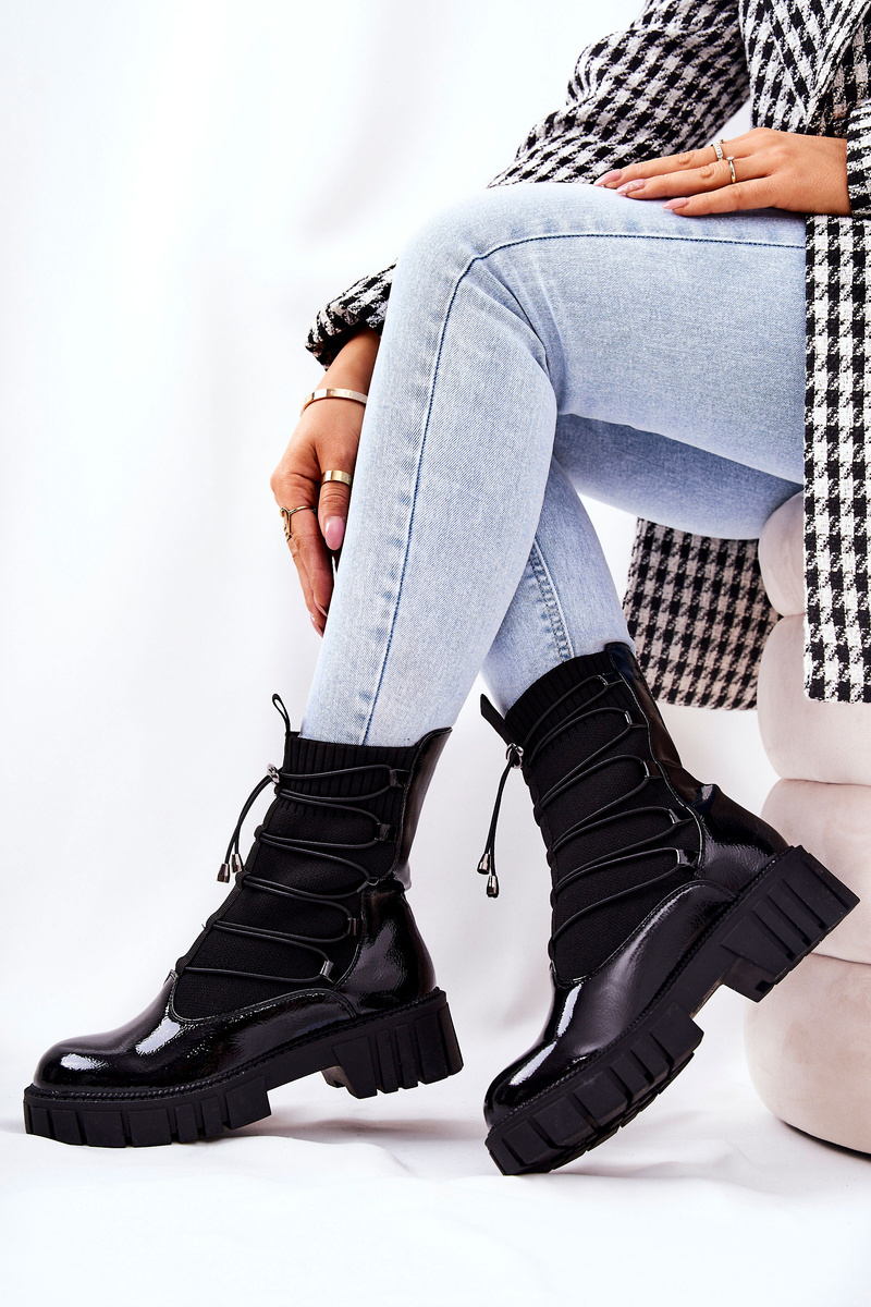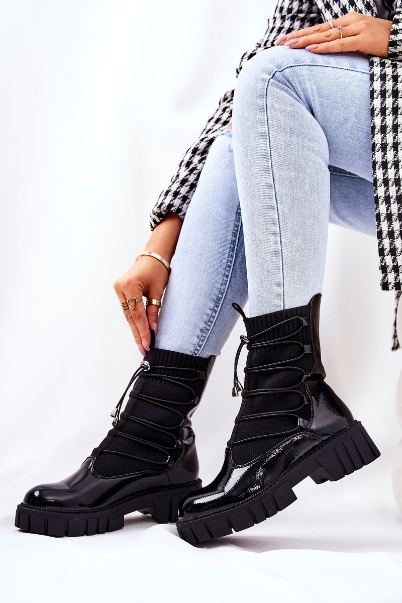 Lakované Dělnická obuv s ponožkou Černe Connor