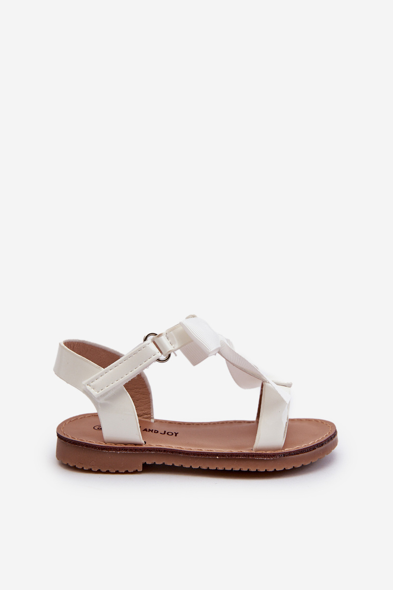 Lakované dětské sandálky s mašlí na suchý zip, bílé Joratia