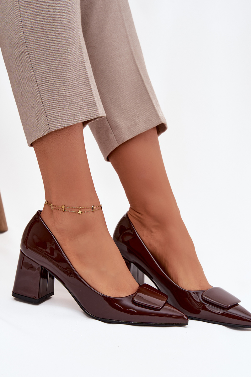 Lakované lodičky na podpatku s ozdobou čokoládové Isoline