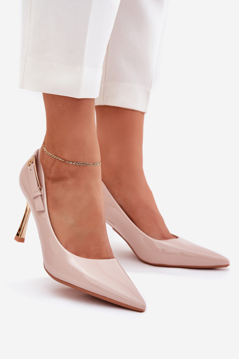 Lakované Lodičky Se Zlatou Sponou Béžové Mivira