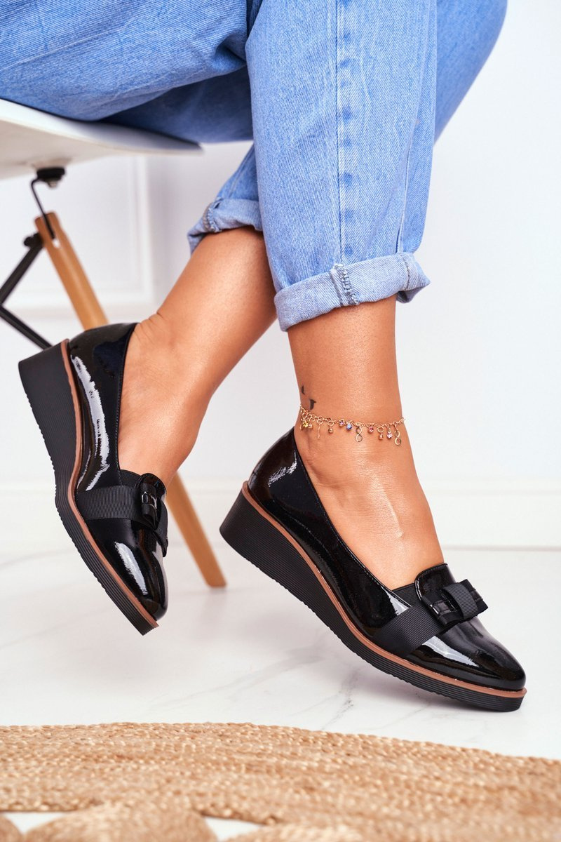 Lakované Polbotky Na Klínu VINCEZA 22-10446 černé