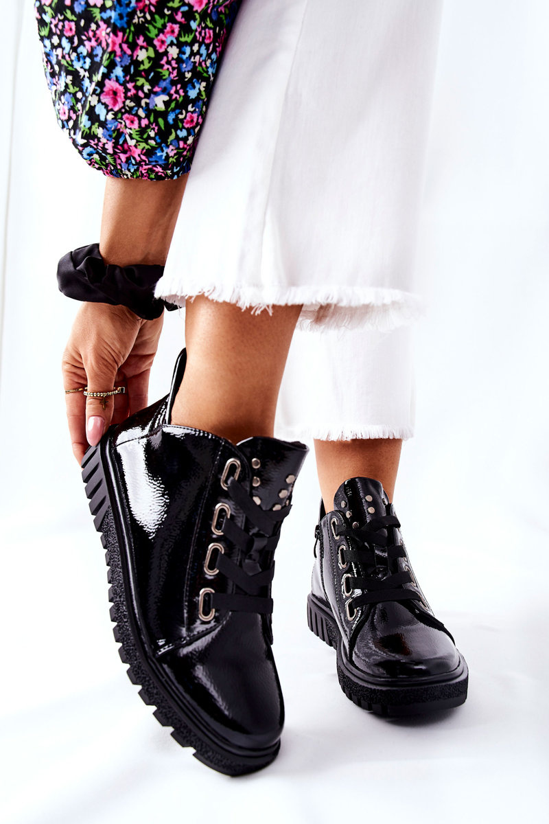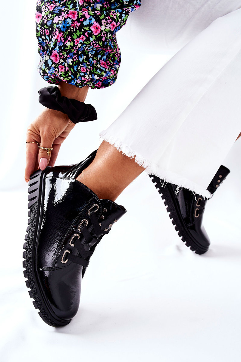 Elegantní polobotky od Sergia Leoneho. Boty jsou vyrobeny s maximální péčí z lakované ekologické kůže. Boty jsou uvnitř zateplené přikrývkou na boty. Mají vázání a zip. Ozdobné kamínky na jazyku. Polobotky Sergio Leone jsou ideální pro chladnější dny!Při výběru velikosti se řiďte tabulkou velikostí.