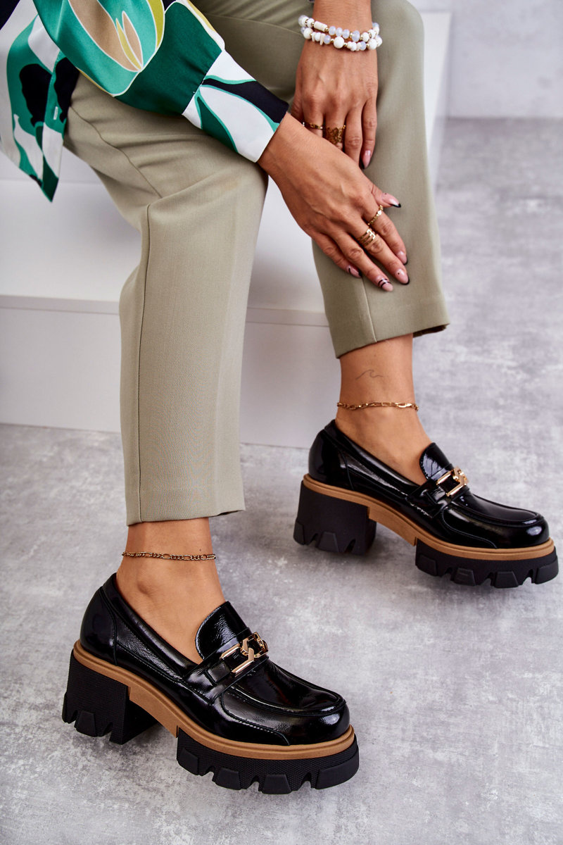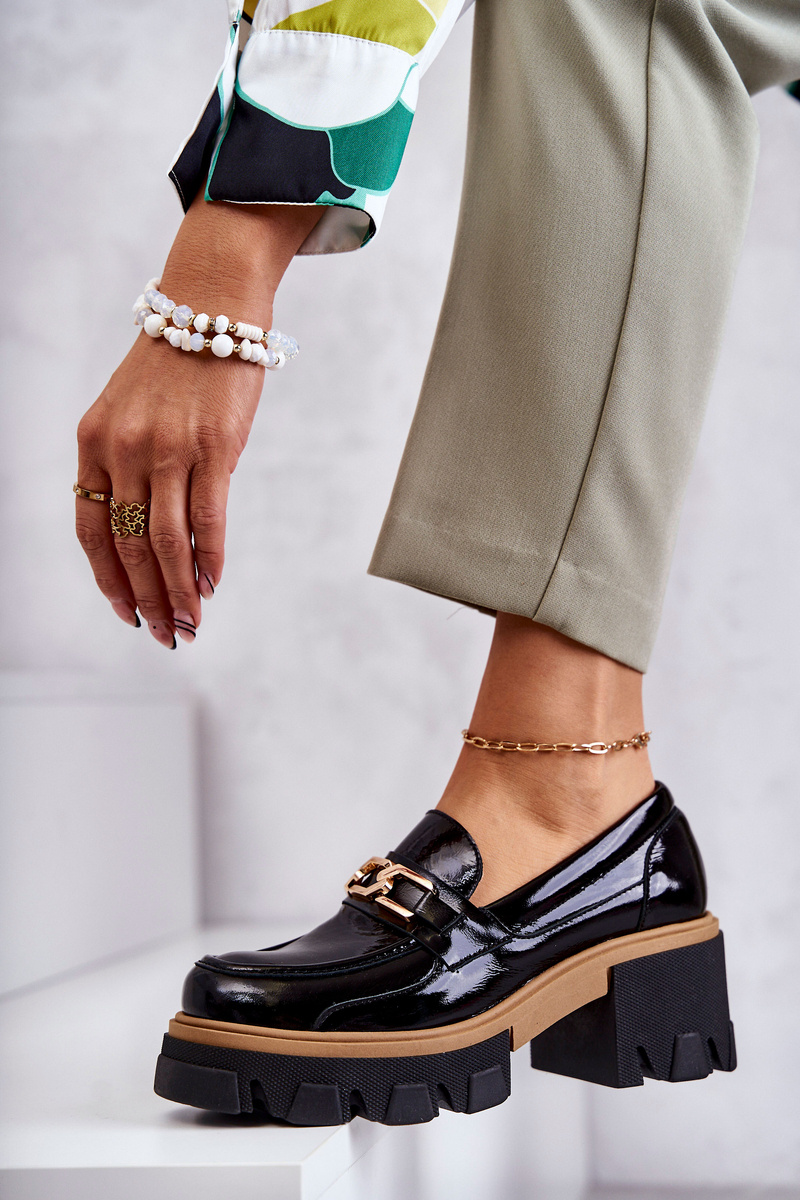 Lakované vysoké podpatky se zlatým ornamentem černé lurdes