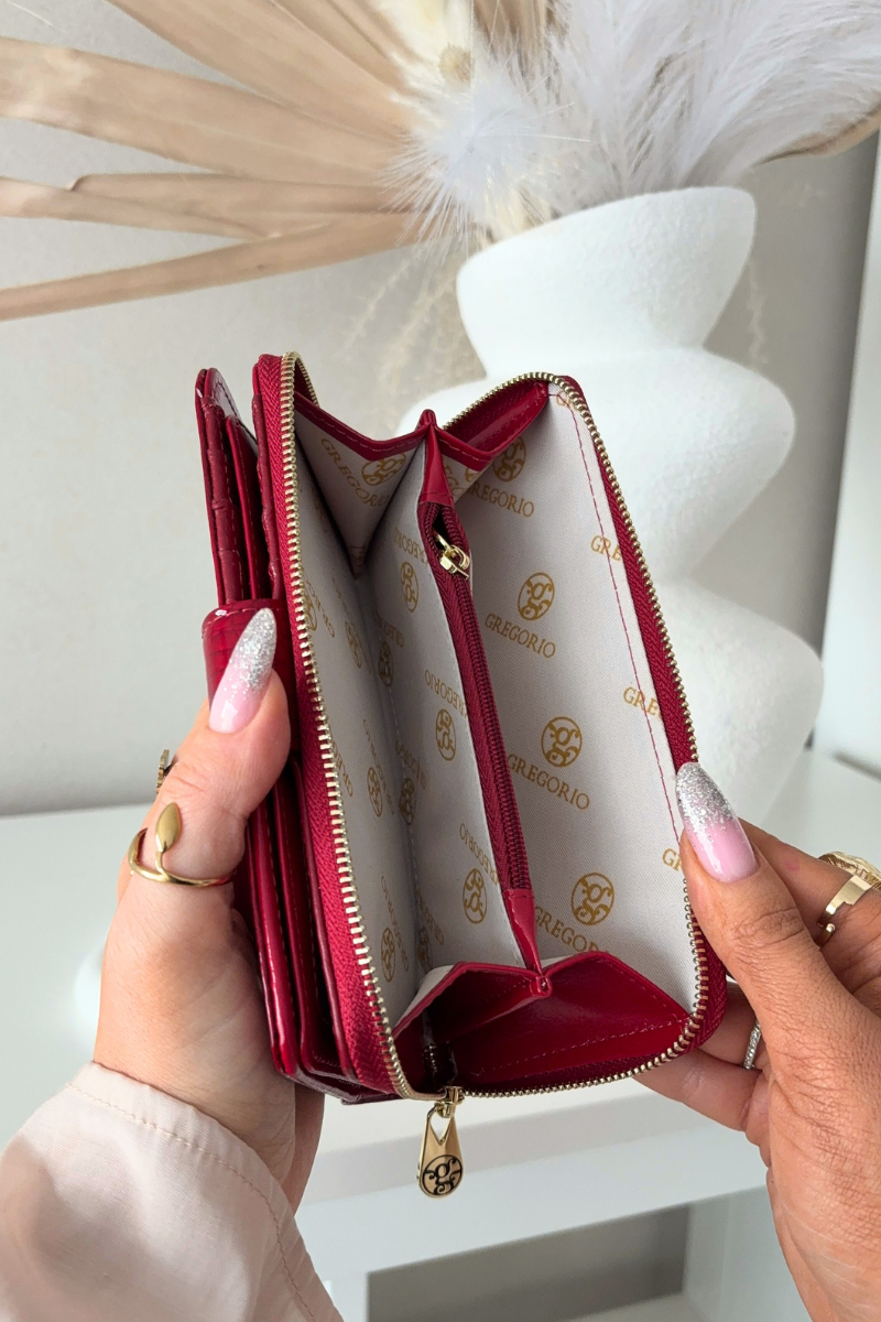 Lakovaný dámský peněženka s reliéfem a zlatým detailem červená Evlinne
