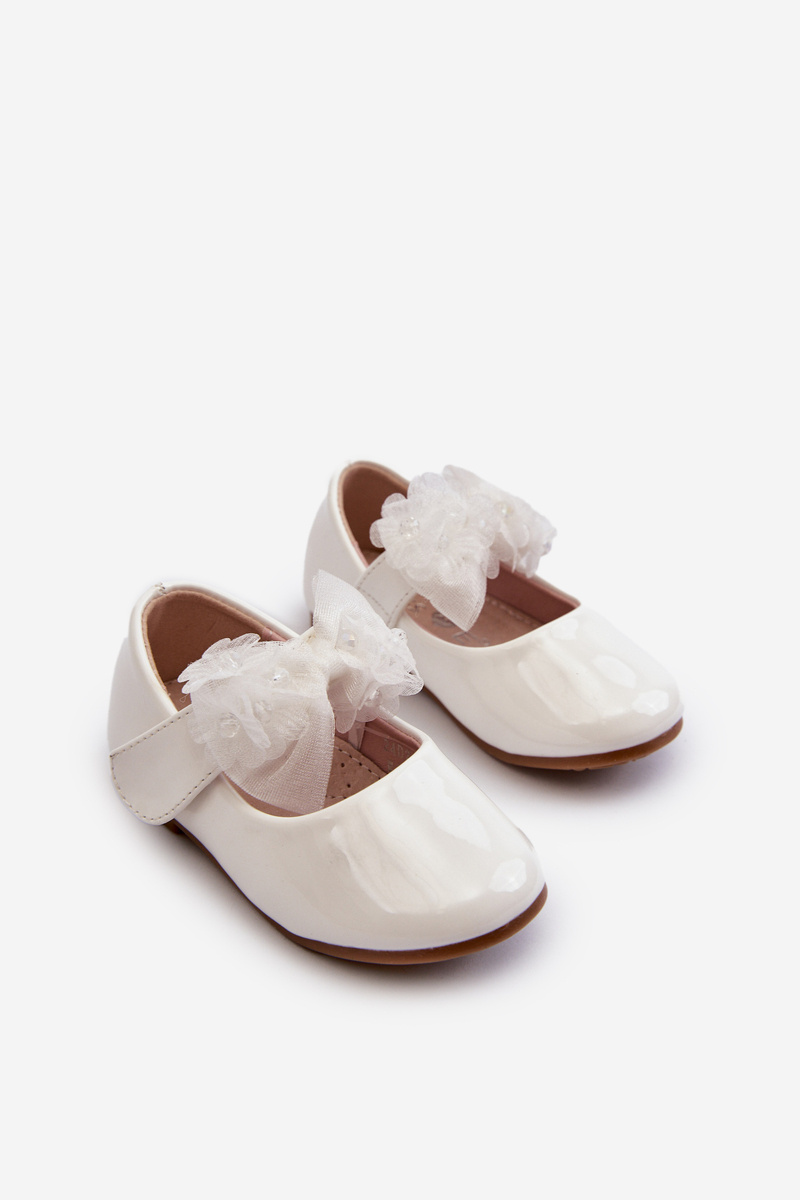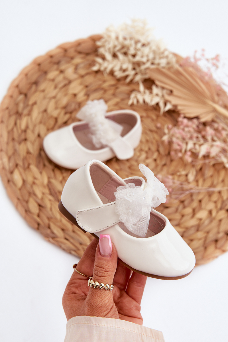 Lakýrované dětské baletky na suchý zip s mašlí Bílé Olessa