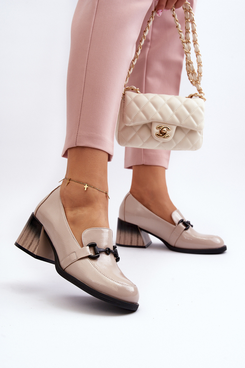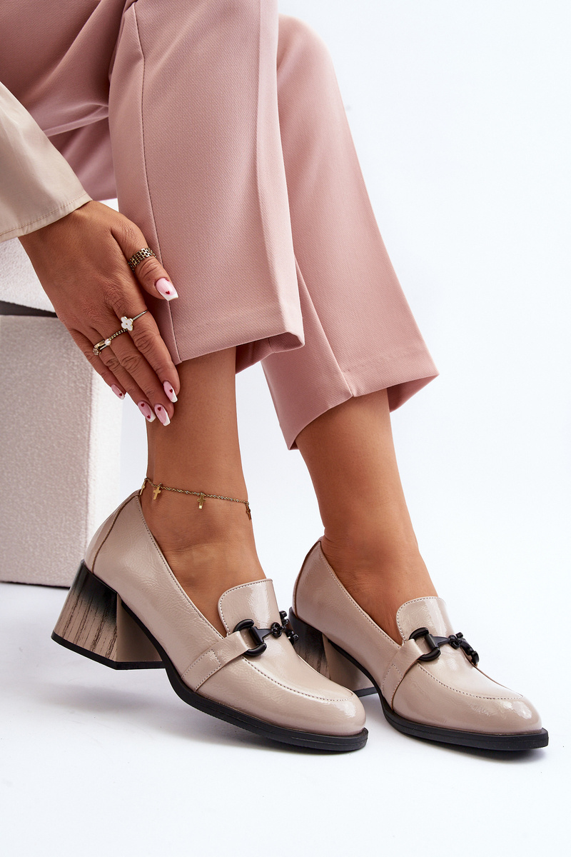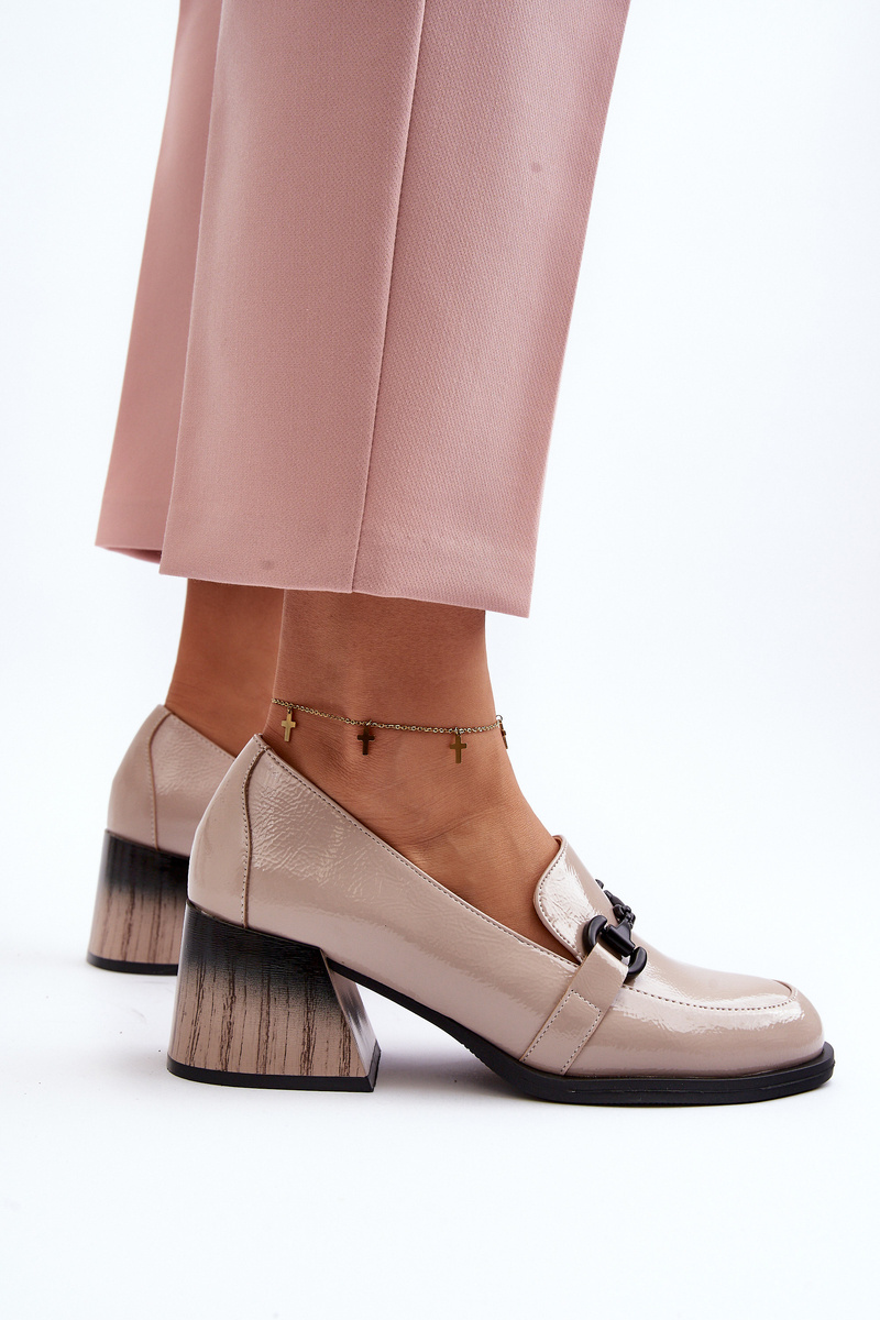 Dámské polobotky vyrobené z ekokože. Usazeny na masivním podpatku. Zakulacené špičky. Na přední straně pásek s ozdobou. Měkká vložka z pravé kůže zajistí pohodlí během nošení. Tento módní střih skvěle doplní jarní stylizace! Při výběru velikosti se řiďte tabulkou velikostí.