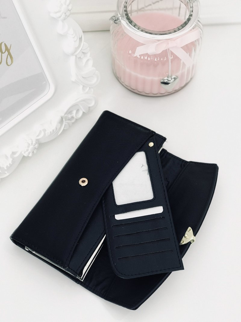 We present beautiful wallets for elegant women, available in several wonderful colors. These products are characterized by a unique style. They are made using only the highest quality materials. Careful and beautiful finish of each portfolio captures incredible attention to detail and fashion taste. The wallet has a latch fastening. Inside there are two zippered pockets, 4 larger compartments for various small items, documents, 6 compartments for cards and a place for a photo. On the back of the wallet there is an additional pocket fastened with a beautiful golden zip.