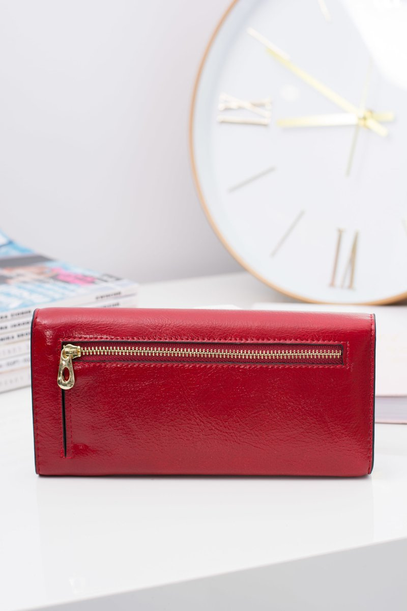We present beautiful wallets for elegant women, available in several wonderful colors. These products are characterized by a unique style. They are made using only the highest quality materials. Careful and beautiful finish of each portfolio captures incredible attention to detail and fashion taste. The wallet has a latch fastening. Inside there are two zippered pockets, 4 larger compartments for various small items, documents, 6 compartments for cards and a place for a photo. On the back of the wallet there is an additional pocket fastened with a beautiful golden zip.