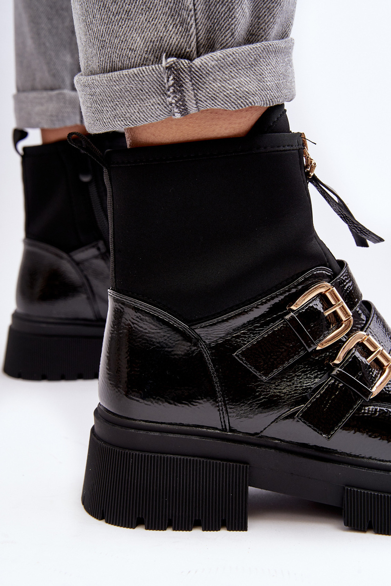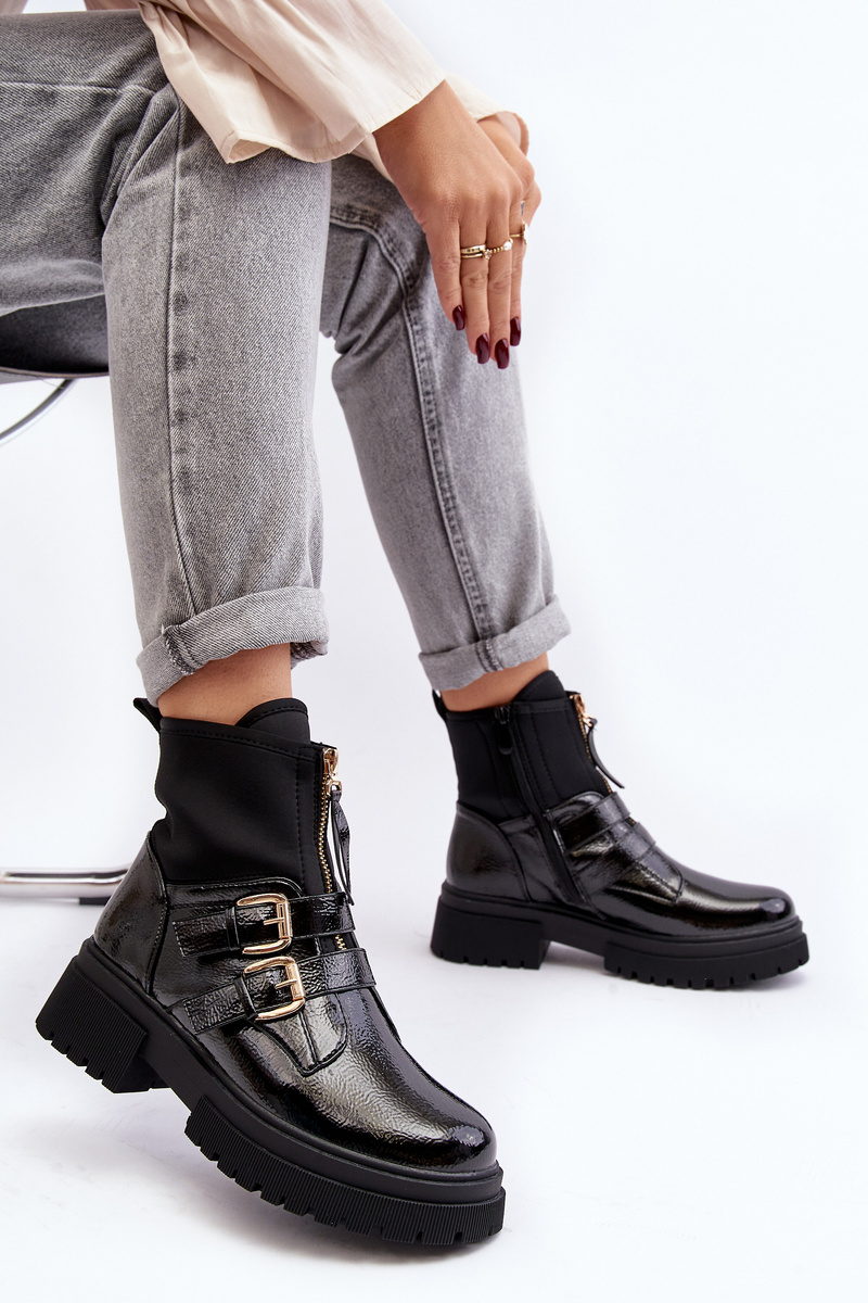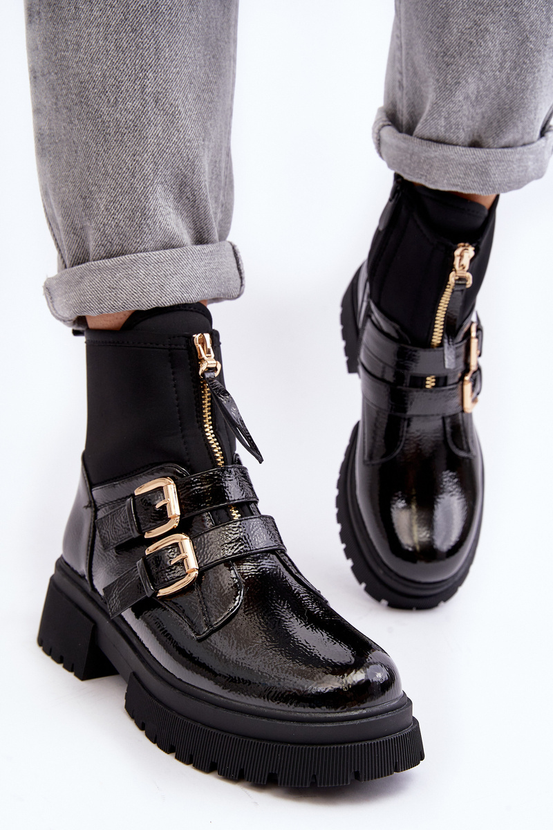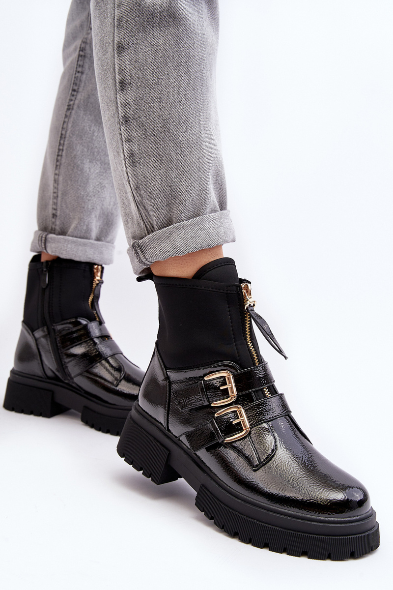 Lesklé černé dámské botky na ploché podrážce Rellisa