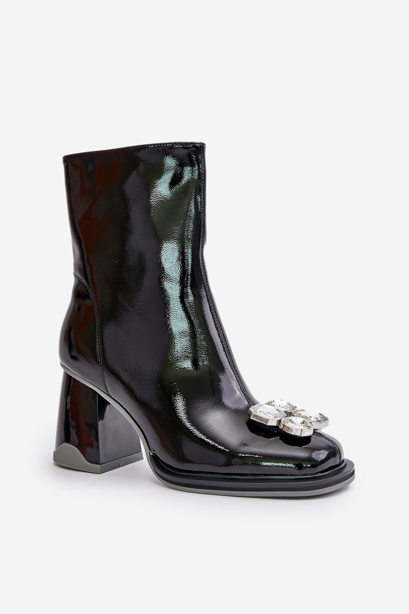 Lesklé dámské boty na podpatku s ozdobou MR880-019 černé D&A