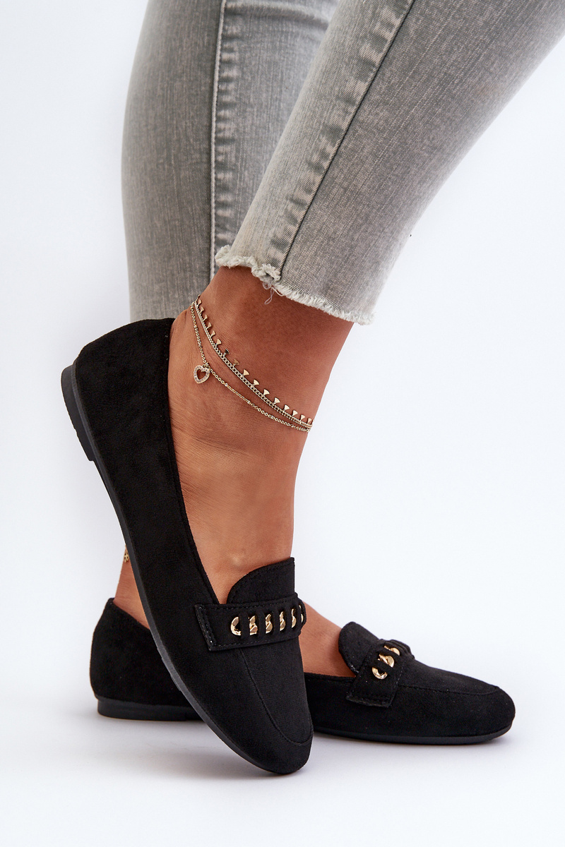 Lesklé Dámské Mokasíny S Řetězem Černé Aredilla