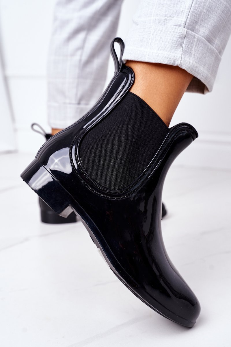 Lesklé Holínky Gumové Galoše Černé Umbrella