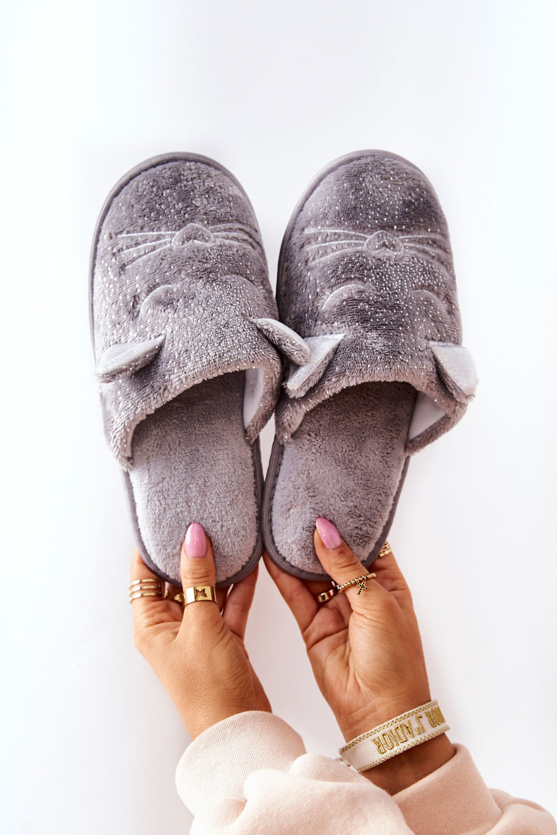 Lesklé kočičí pantofle Ears šedé Kaisy
