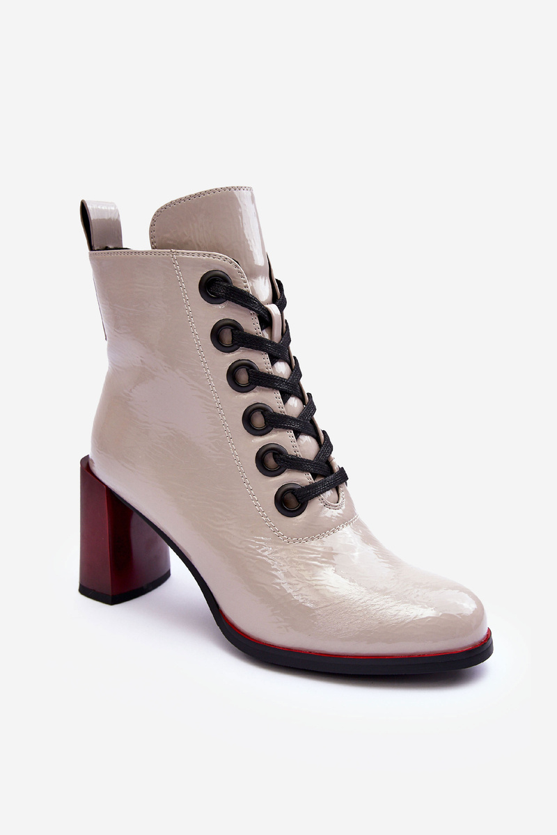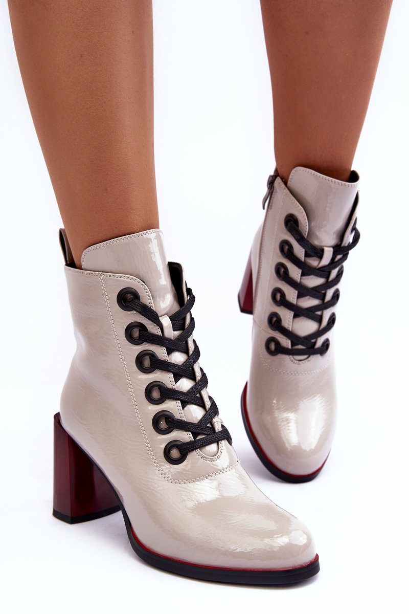 Leštěné šněrovací botky na podpatku SBarski MR870-15 světle šedé