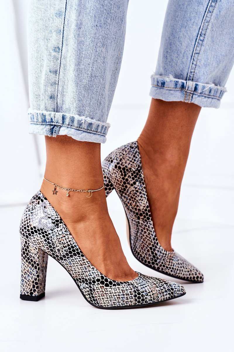 Lodičky Na Podpatku Se Zvířecím Vzorem Lewski Shoes 2453 Černé-Modré