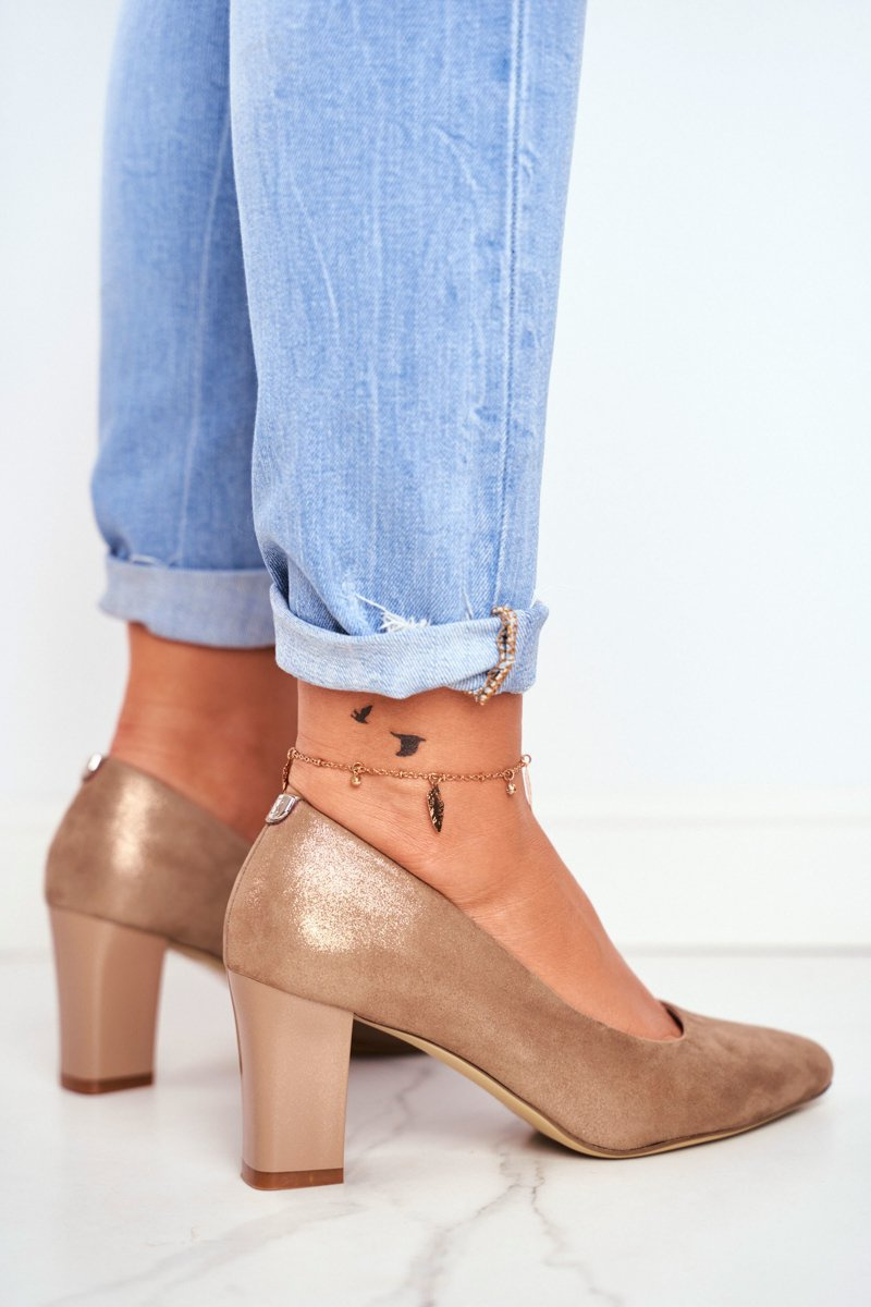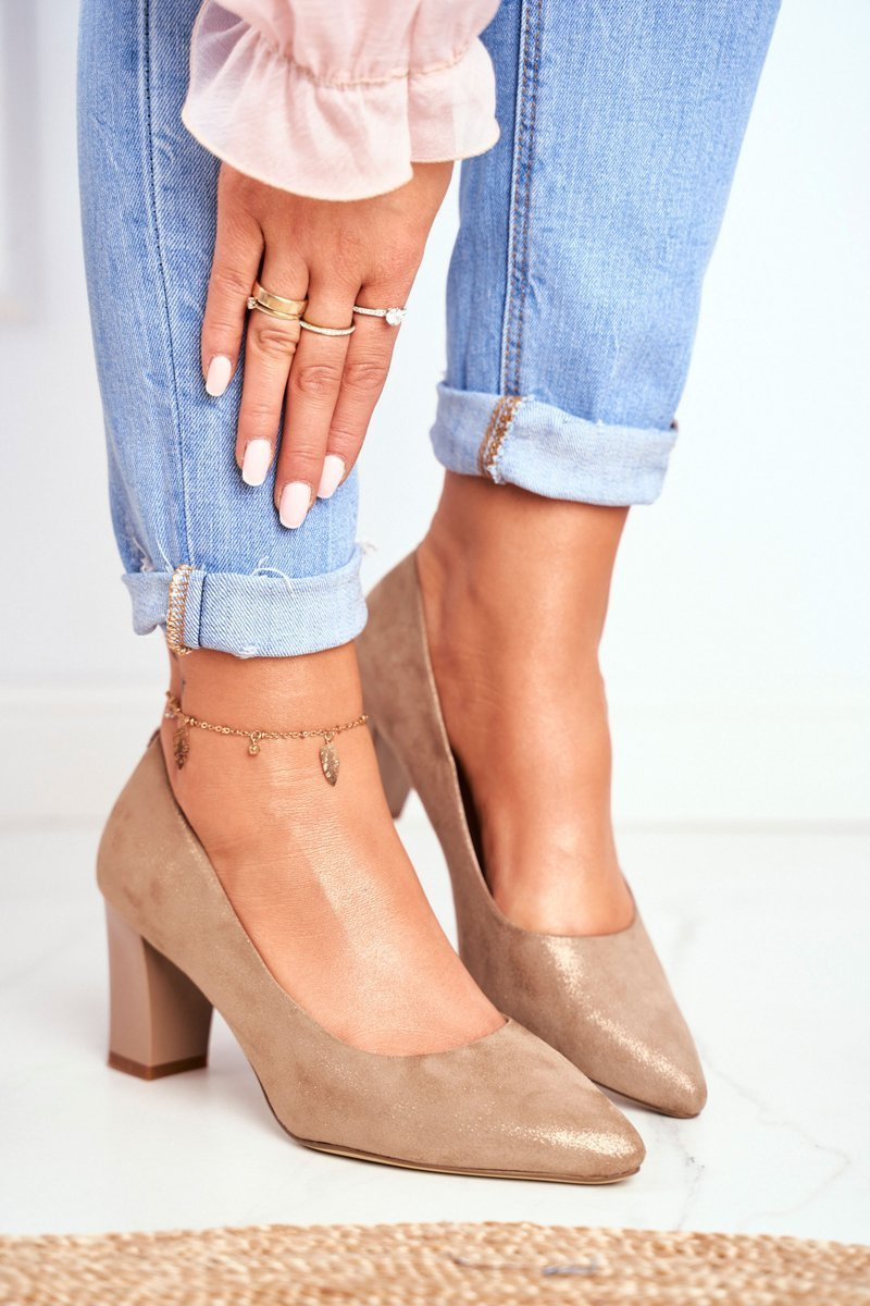 Lodičky Na Podpatku Sergio Leone PB403 Třpytivé Béžove
