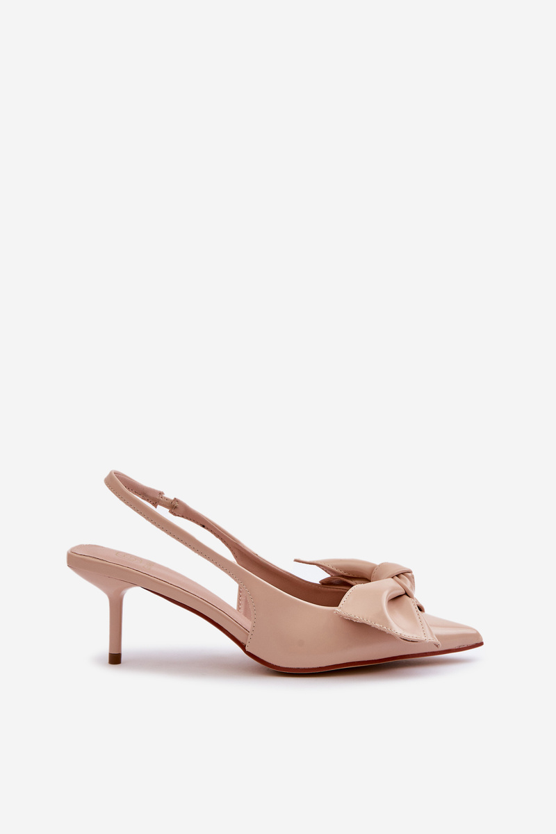 Elegantní dámské lodičky z eko kůže. Tento model se vyznačuje špičatými špičkami. Přední část boty ozvláštňuje efektní mašle, která podtrhuje jedinečný charakter lodiček. Skvělé pro večerní stylizace! Při výběru velikosti se řiďte tabulkou velikostí.