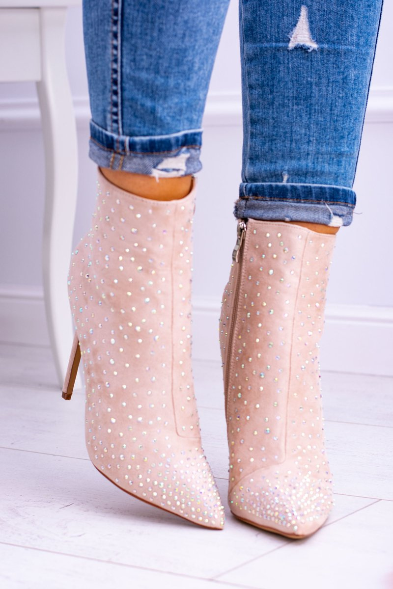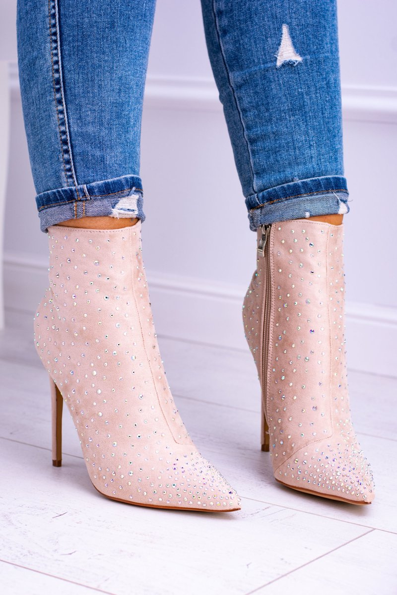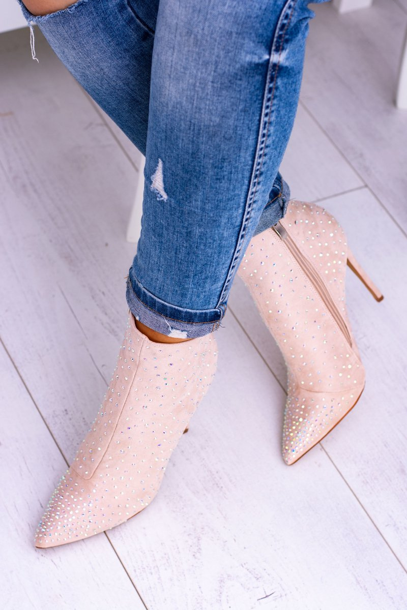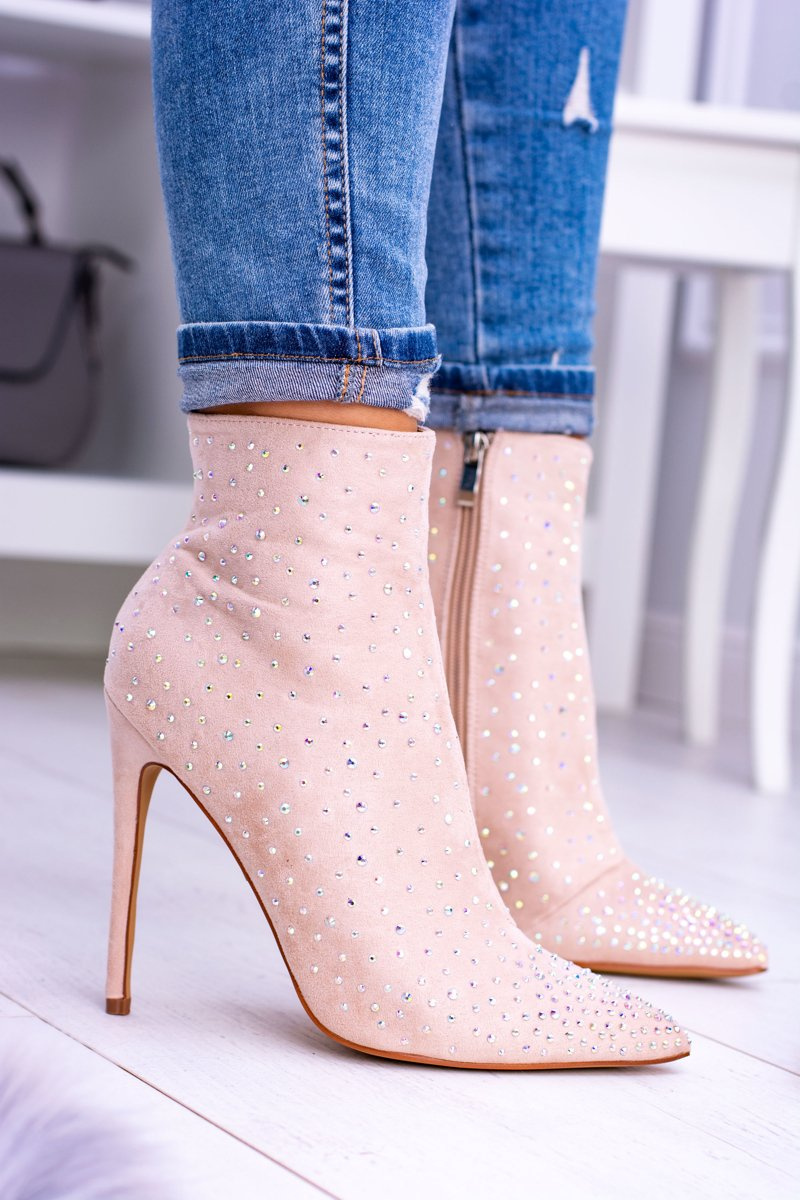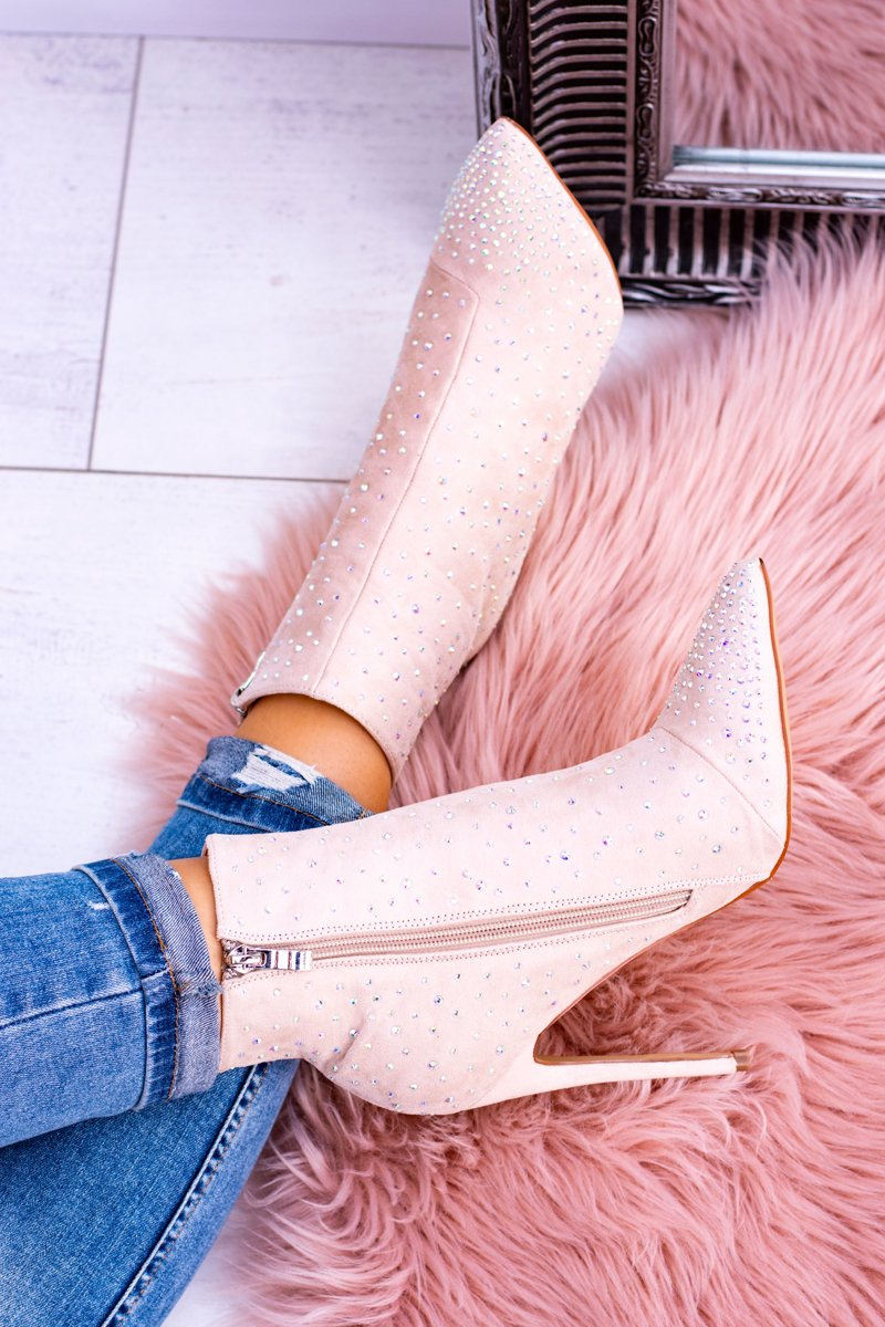 Lu Boo béžové semisove vysoké boty na patě zirkony Cubano