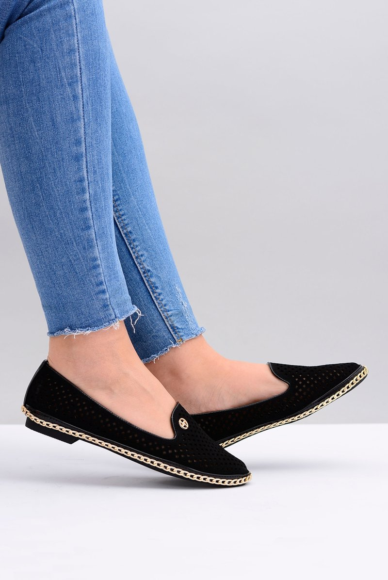 Nejnovější model ballerin s vysokým podpatkem přímo od našeho oblíbeného výrobce Lu Boo! Posuvný typ je ideální pro jaro nebo léto. Jsou velmi pohodlné, měkká stélka vyrobená z eko kůže poskytne potřebné pohodlí při chůzi. Velmi lehké a dokonale se drží nohy. Dalšími prvky jsou design a dekorace v podobě zlatého řetězu kolem podešve. Nečekejte, kupte si za skvělou cenu!