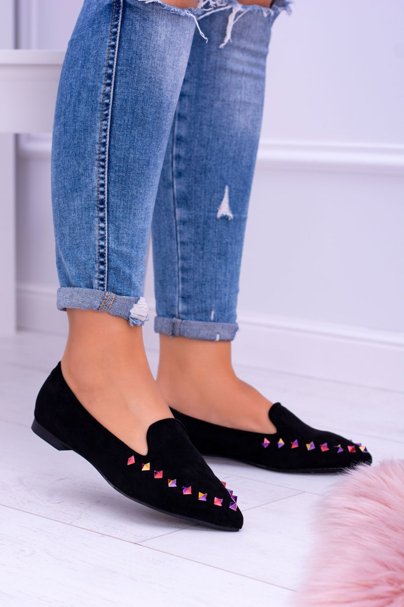 Lu Boo černé loafers Iridescent bodce Semiš Spike