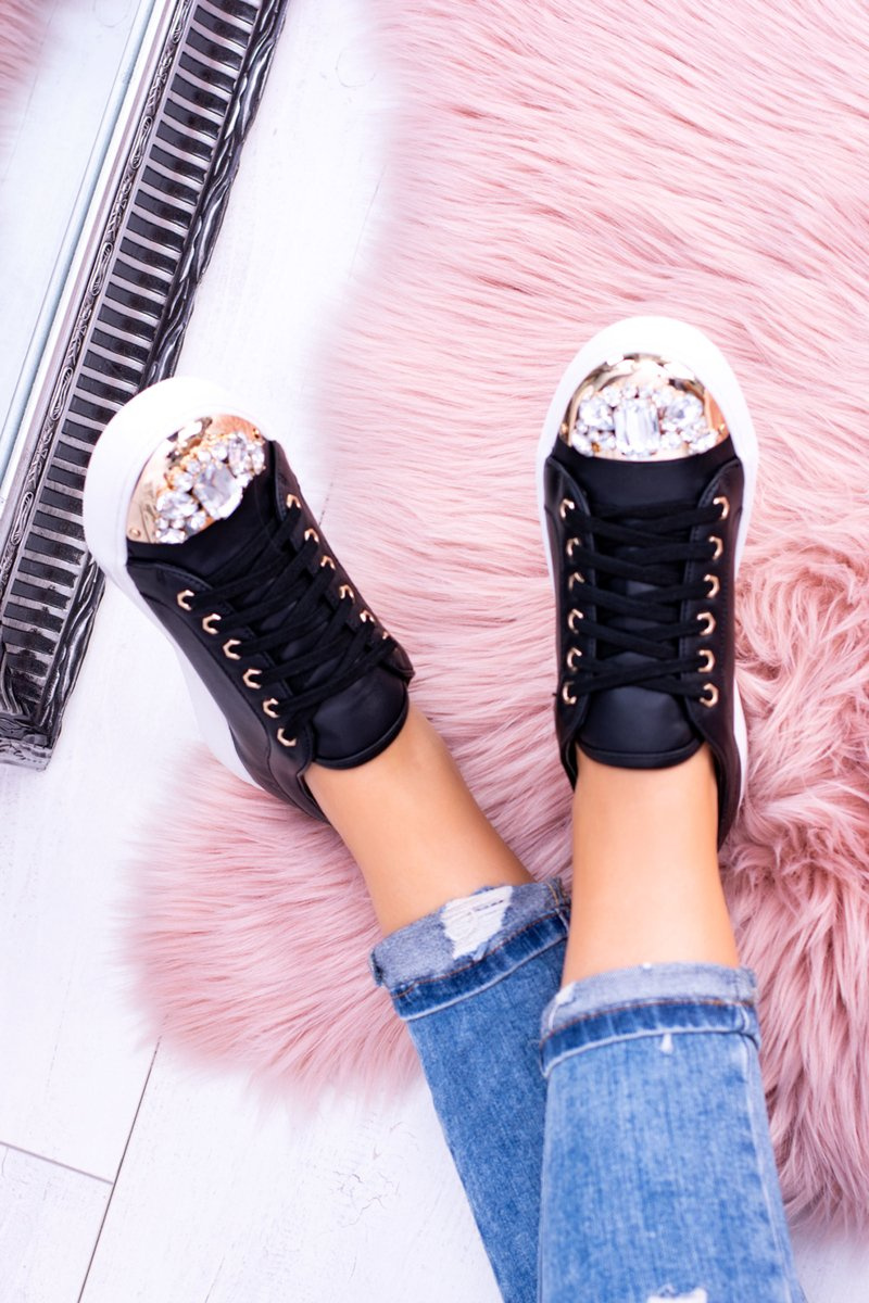 Lu Boo černé tenisky s lesklými krystaly