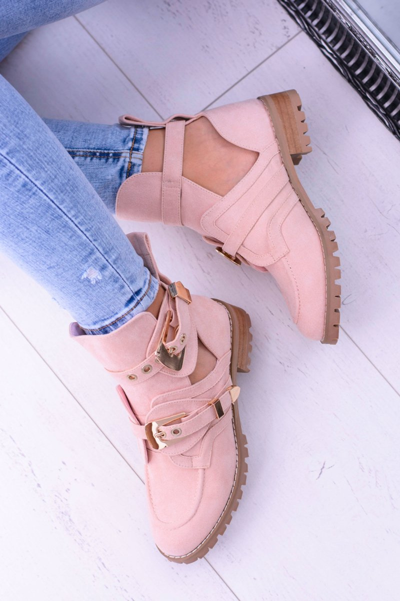 Lu Boo růžové Suede vystřihnout kotníkové boty Rock Girl
