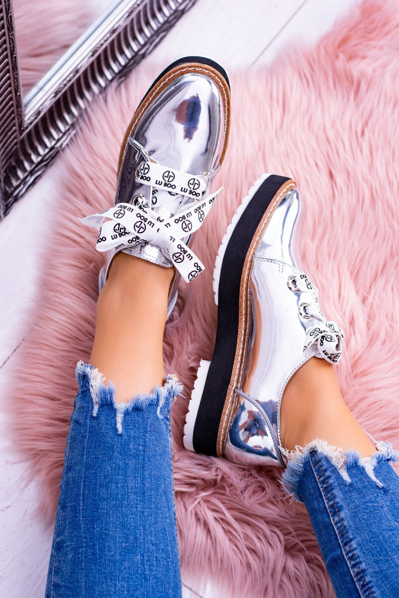 Lu Boo Stříbrné zrcadlové dámské boty Moonlight