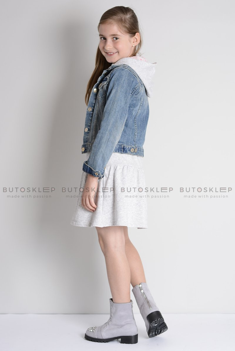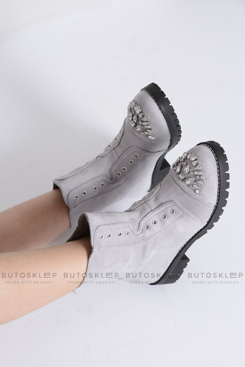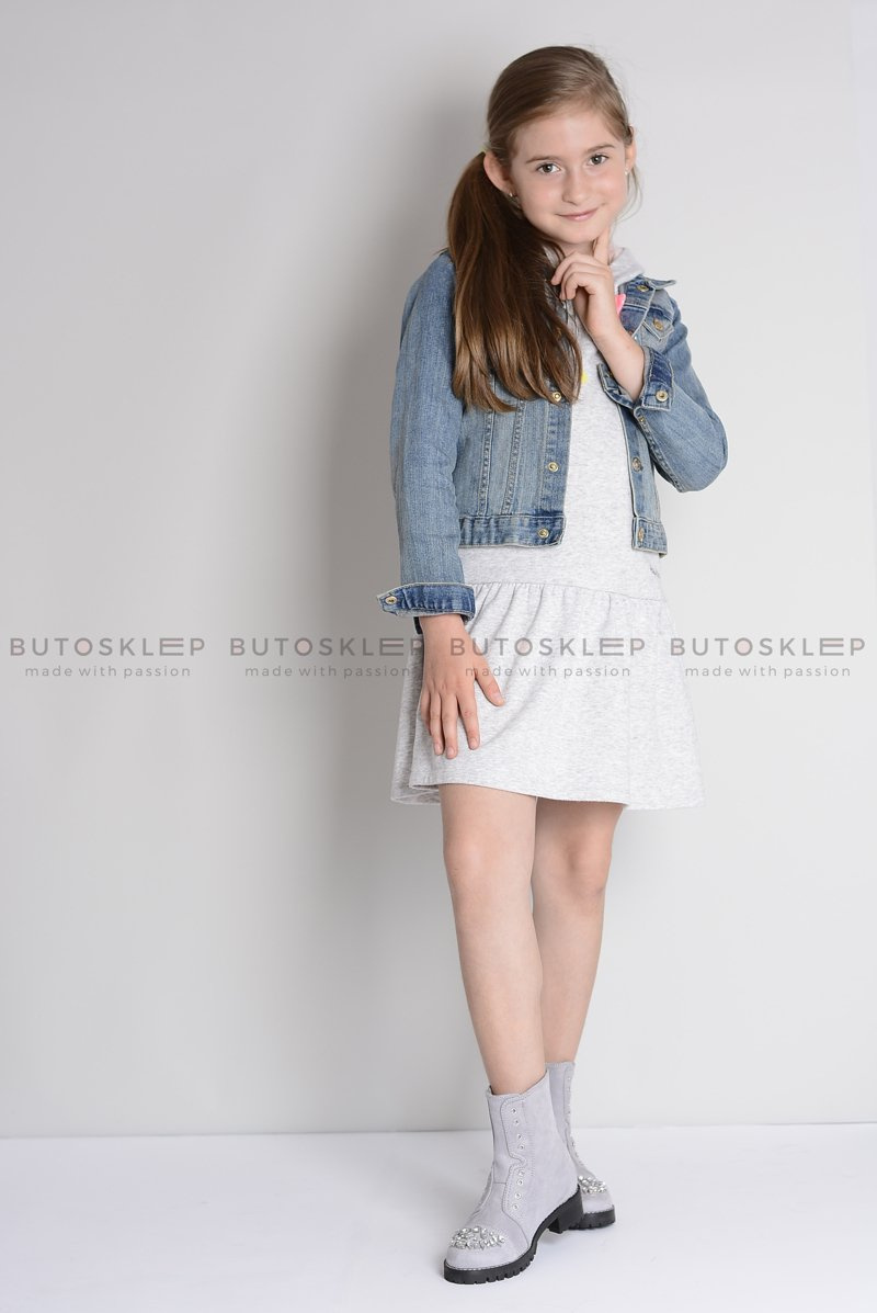 Lu Boo Szare Dziecięce Botki Za Kostkę z Cyrkoniami LittleCarrie